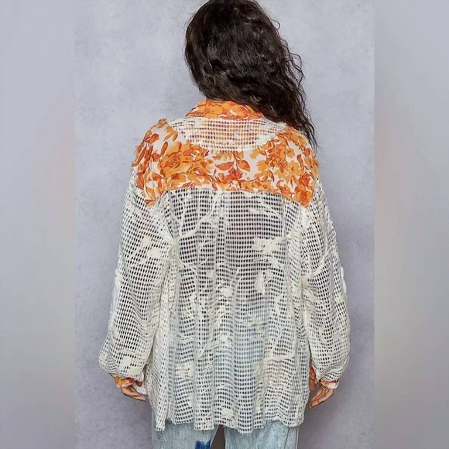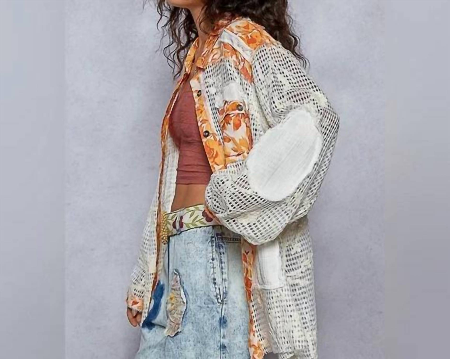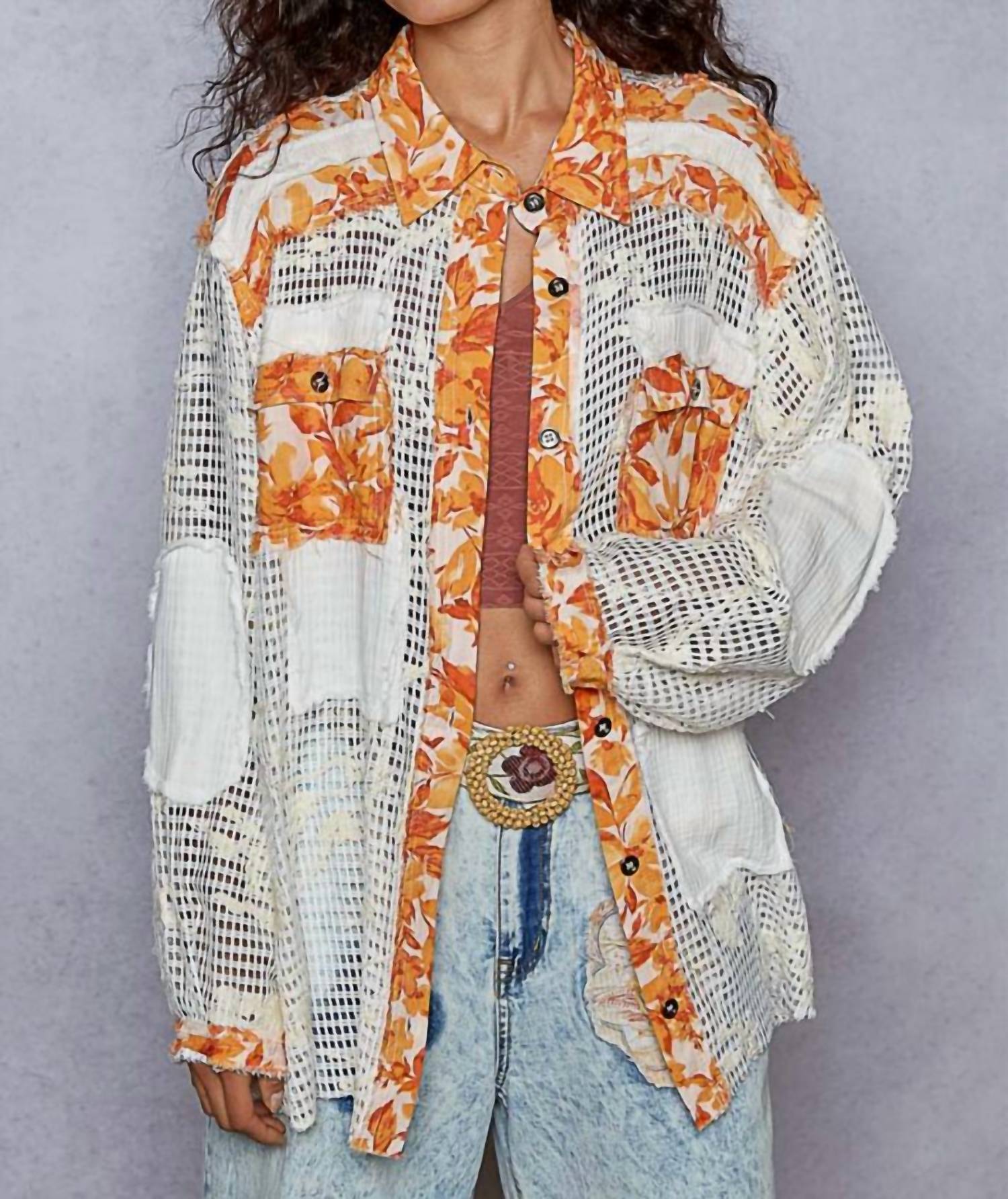 This button down shirt is comfortable yet polished. Introducing the Autumn Patchwork Shacket by POL, a vibrant fusion of warm orange florals and cream tones, perfect for a boho chic aesthetic. This long-sleeve piece features a mix of floral patterns, boasting an oversized silhouette for effortless layering throughout spring. Crafted as a button closure design with a collar, it incorporates functional double chest pockets for added utility. While care instructions are not specified, this lightweight and breathable shacket is your perfect transitional companion for fall festivities.