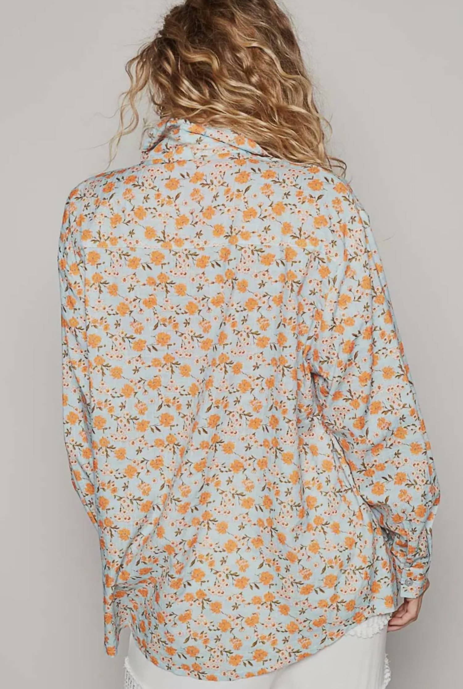 A classic button down shirt that will never go out of style. Elevate your beach day look with the POL Long Sleeve Button Down Printed Shirt, a staple for any spring wardrobe. Featuring a relaxed fit in a captivating powder blue floral pattern, this shirt is crafted from 100% rayon for a breezy and comfortable wear. Closure: Button closure.