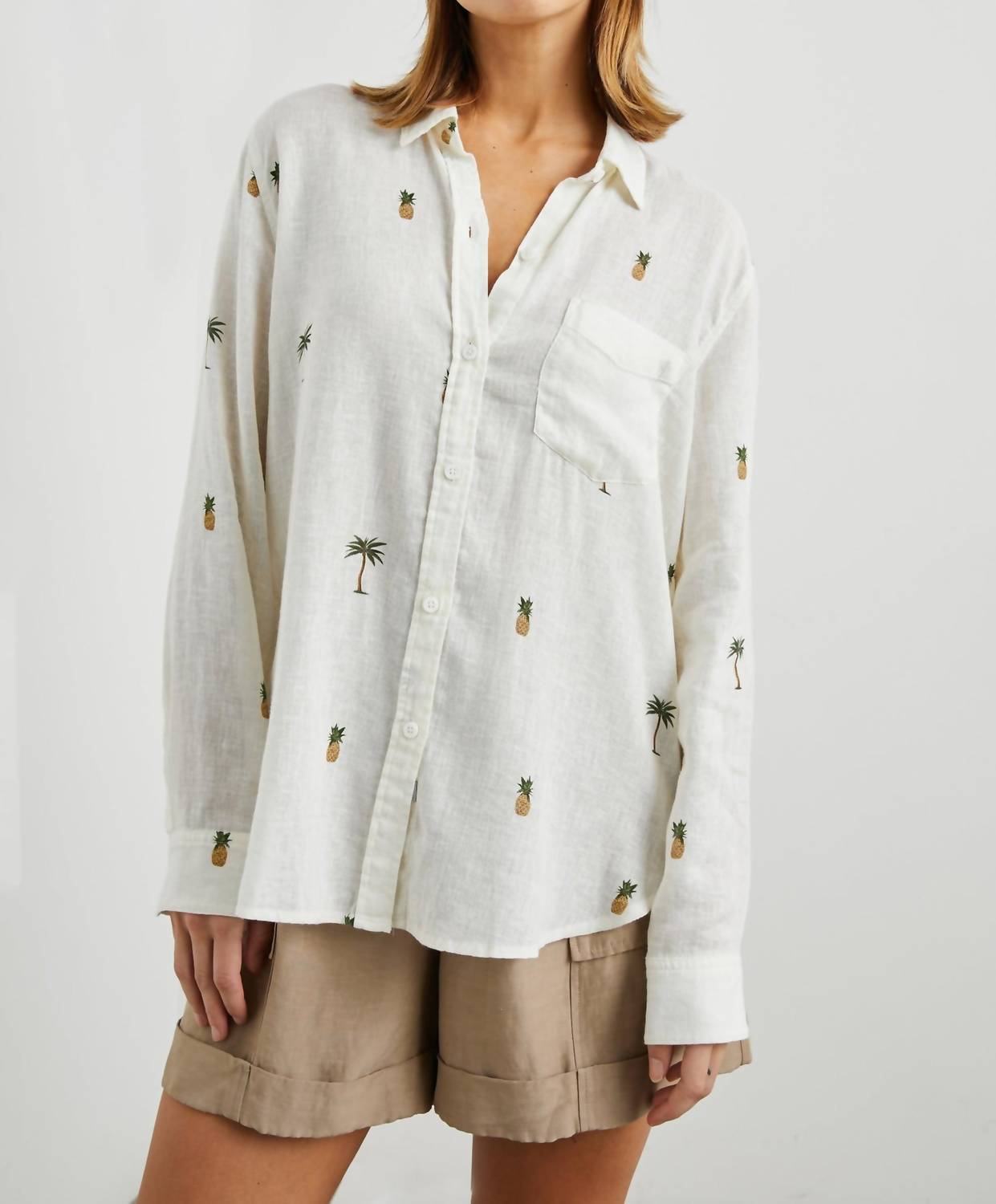 Perfectly tailored and soft to the touch. Elevate your summer wardrobe with the Charli Shirt by Rails, a perfect choice for holiday parties. Crafted from a breathable 55% Linen | 45% Rayon blend, this long sleeve button-down shirt boasts a graphic pattern that embodies boho chic style. Designed with practicality in mind, it features functional pockets and a classic collar. Care is straightforward with hand wash and line dry instructions, ensuring your shirt stays in great condition.
