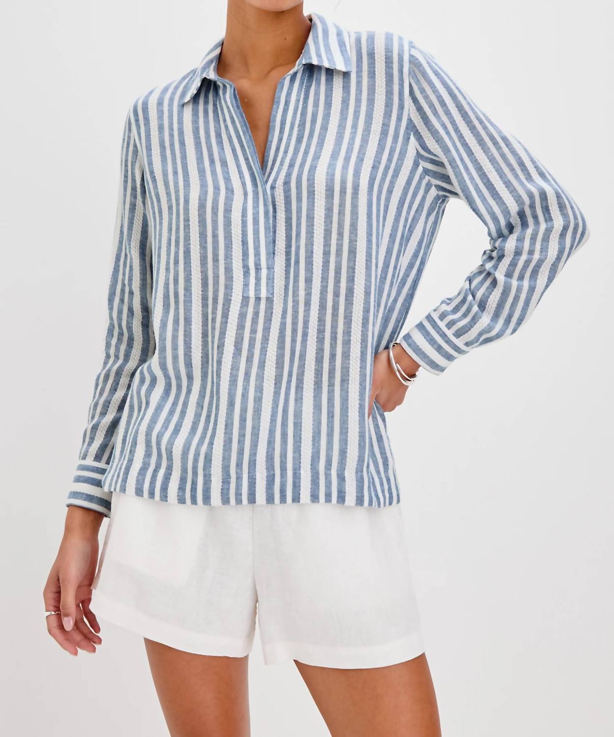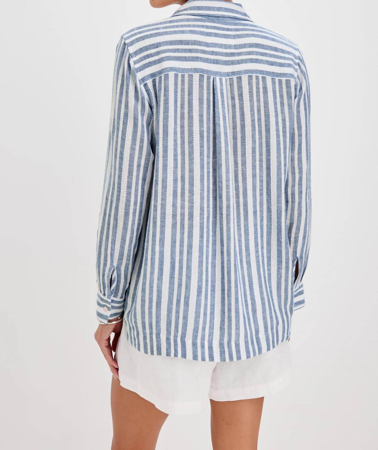 A classic button down shirt that will never go out of style. Discover the Lagoon Top by Rails, an effortlessly chic button-down perfect for spring's embrace. Crafted with long sleeves from a luxurious blend of 55% Linen and 45% Ecovero, this eco-friendly shirt presents a stylish Jalisco Stripe pattern. Closure: Pull-on design. Care: Machine wash and line dry for easy maintenance. Imported for ultimate quality, this piece combines fashion-forward Y2K trends with classic elements, making it ideal for memorable occasions.