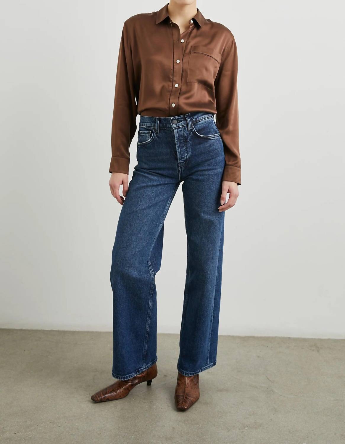 This button down shirt is comfortable yet polished. Elevate your wardrobe with the Women's Button Down Top by Rails in a rich Espresso hue. This long-sleeve top is meticulously crafted from 100% Silk, offering a luxurious feel that exudes sophistication. Adorned with a classic collar and equipped with a button closure, it's perfect for both casual and dressy looks. Designed with a solid pattern, this piece effortlessly transitions from day to night, making it ideal for vacation wear in the Spring season.