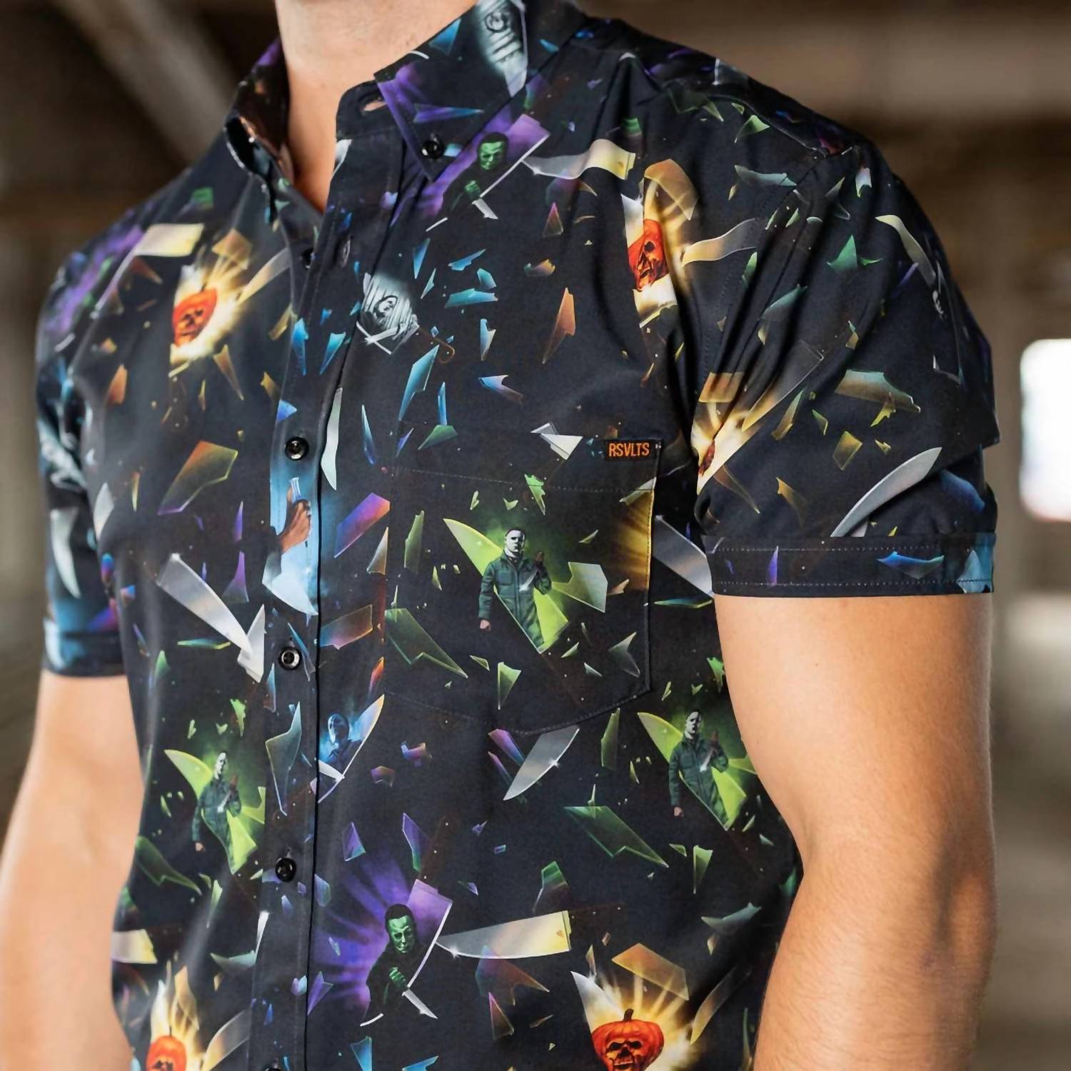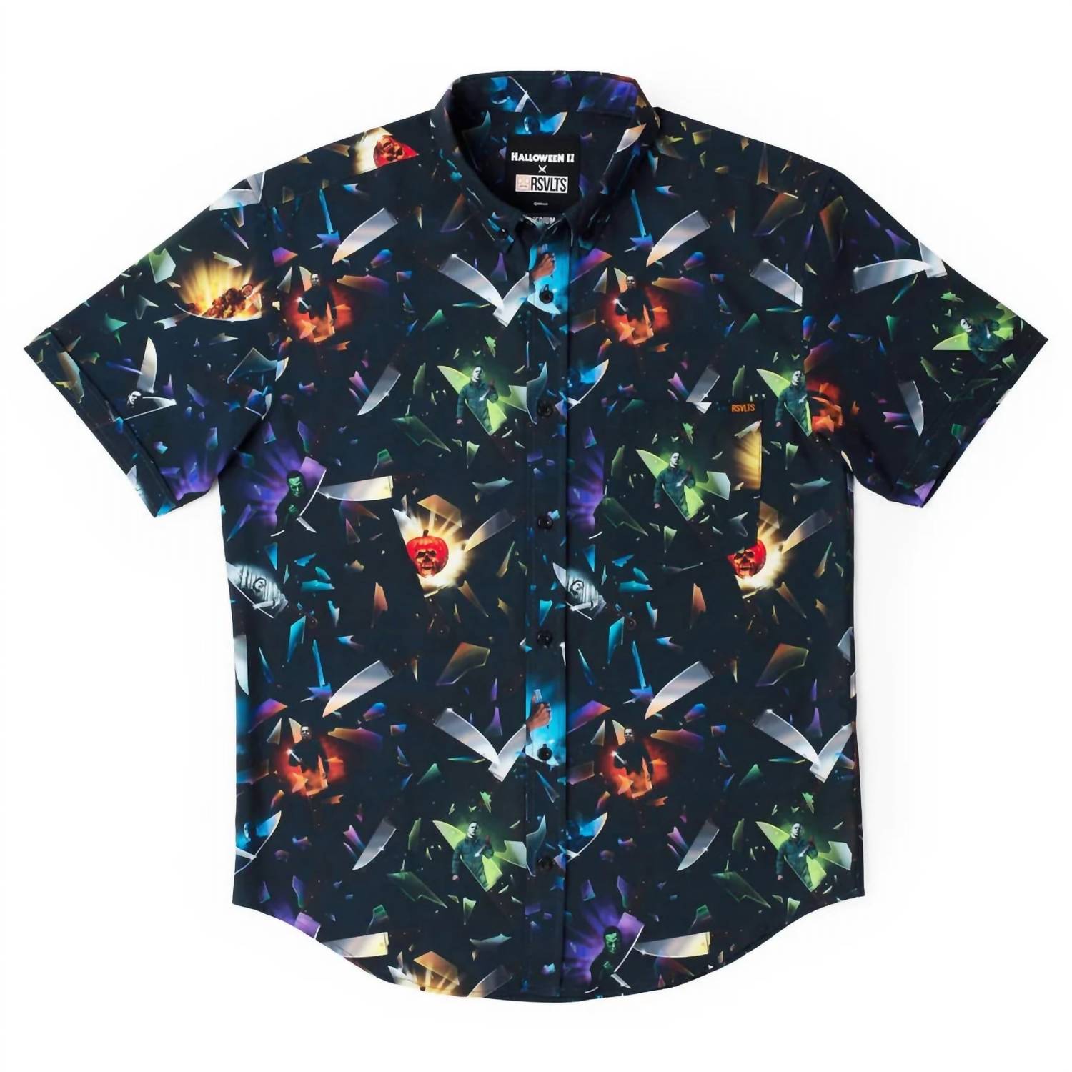 Perfectly tailored and soft to the touch. Elevate your summer wardrobe with the RSVLTS "Deep Cuts" Kunuflex Short Sleeve Polo Shirt, a striking addition for Halloween enthusiasts. Crafted from a blend of Polyester and Spandex, this patterned masterpiece showcases a vivid display of blades and shattered glass against a blue canvas. Proudly featuring a button closure and practical pocket, this men's shirt is designed with a classic collar neckline. Care is a breeze with machine wash and tumble dry instructions, making it a perfect choice for a vacation-ready maximalist style.