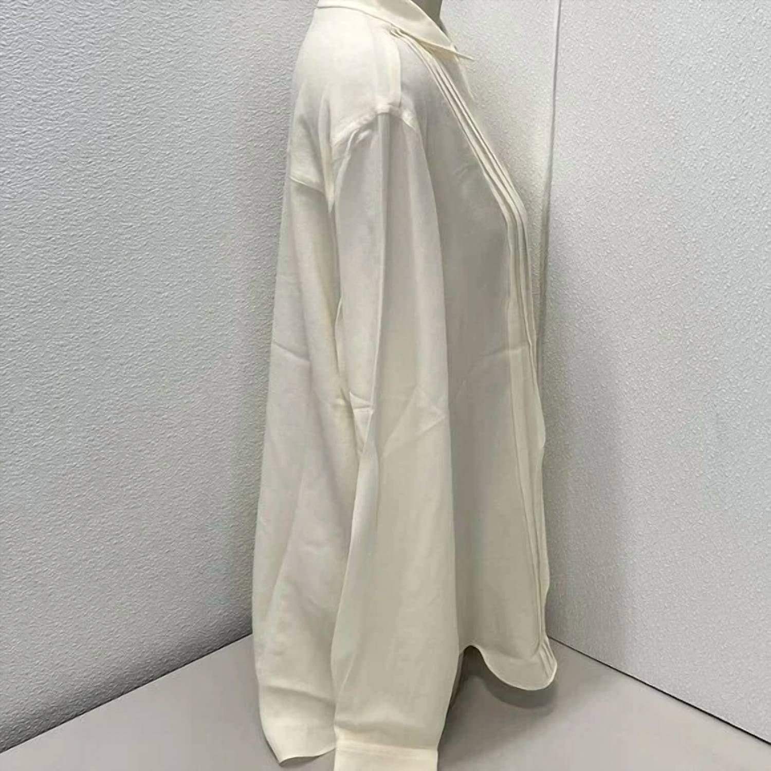 Perfectly tailored and soft to the touch. Experience the epitome of elegance with the Camille Silk Button-up Shirt by Rue Sophie. Designed in a timeless cream hue, this long-sleeved shirt enhances any wardrobe with its relaxed yet polished silhouette. Crafted from 100% silk, it features a solid pattern and a classic collar for a refined touch. Closure: Button closure. Care: Dry clean only. Perfect for workwear or elevated casual looks.