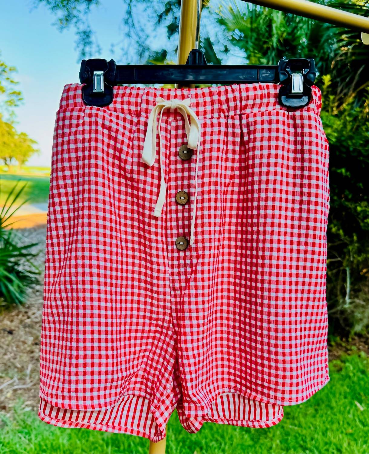 A classic button down shirt that will never go out of style. Elevate your summer wardrobe with the Scout Button Down Top And Short Set by Sewn and Seen, featuring a playful stripe pattern. The short sleeve, collar-neckline top is crafted from 100% polyester for lightweight breathability. This set includes a button closure for easy wear and comes with matching high-rise shorts, perfect for vacation vibes. Available in red and navy, it offers versatile styling options, whether worn together or mixed and matched. Care instructions: Hand wash and line dry.