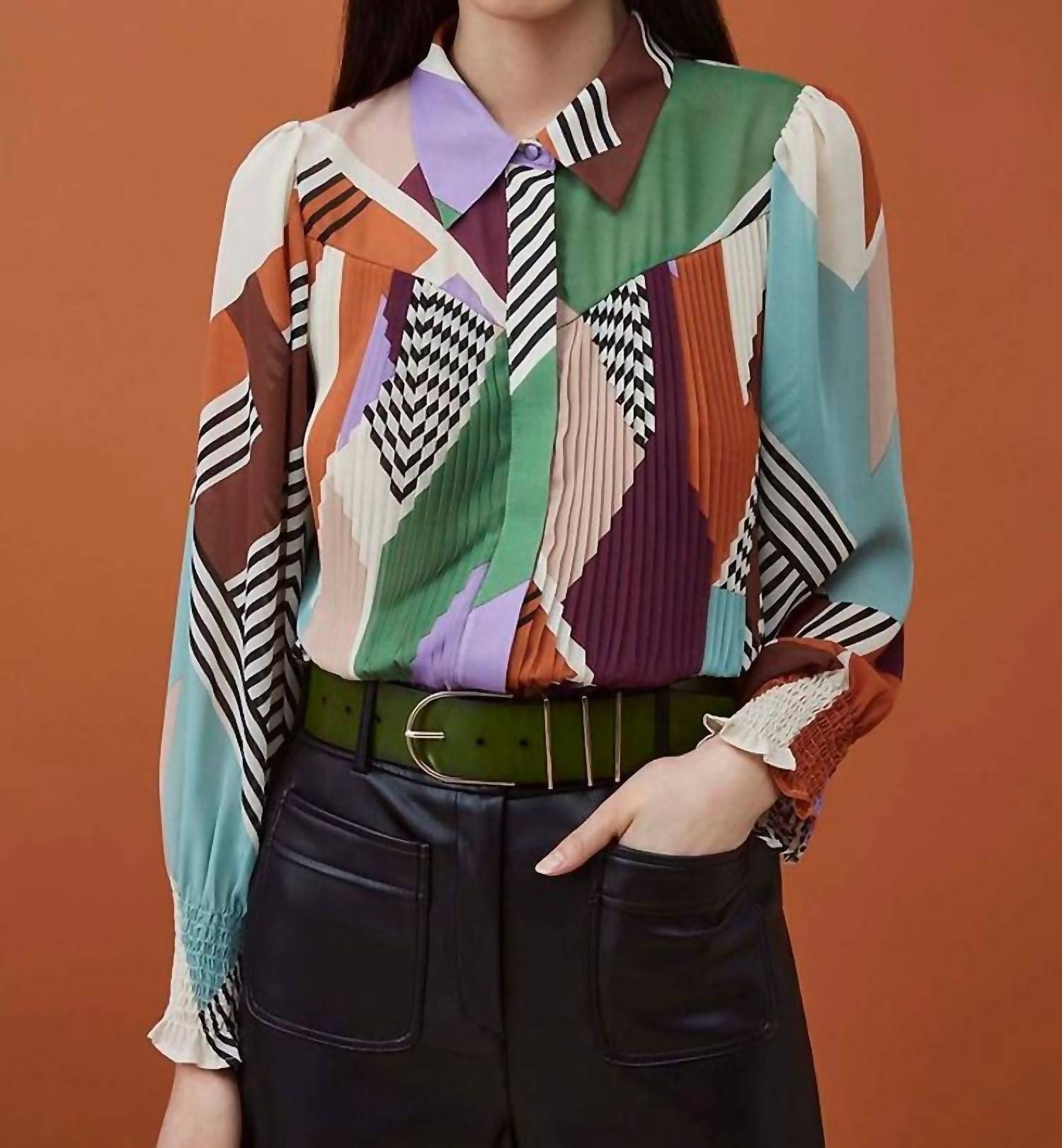 Perfectly tailored and soft to the touch. Introducing the Suncoo Lison Abstract Print Top, a perfect blend of comfort and style with its long sleeves and geometric pattern. Crafted from Polyester, this multi-colored button-down blouse offers a smooth and effortless drape. Closure: Button closure. Care instructions: Hand wash and line dry.