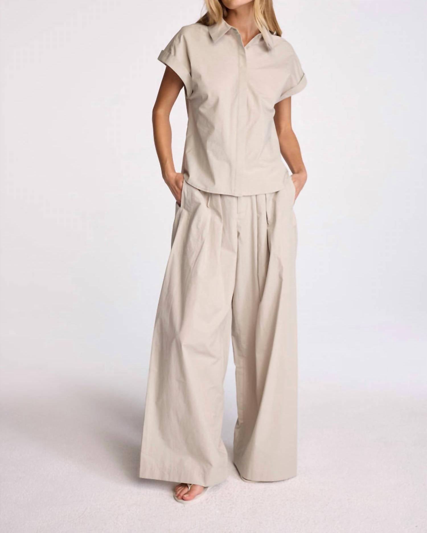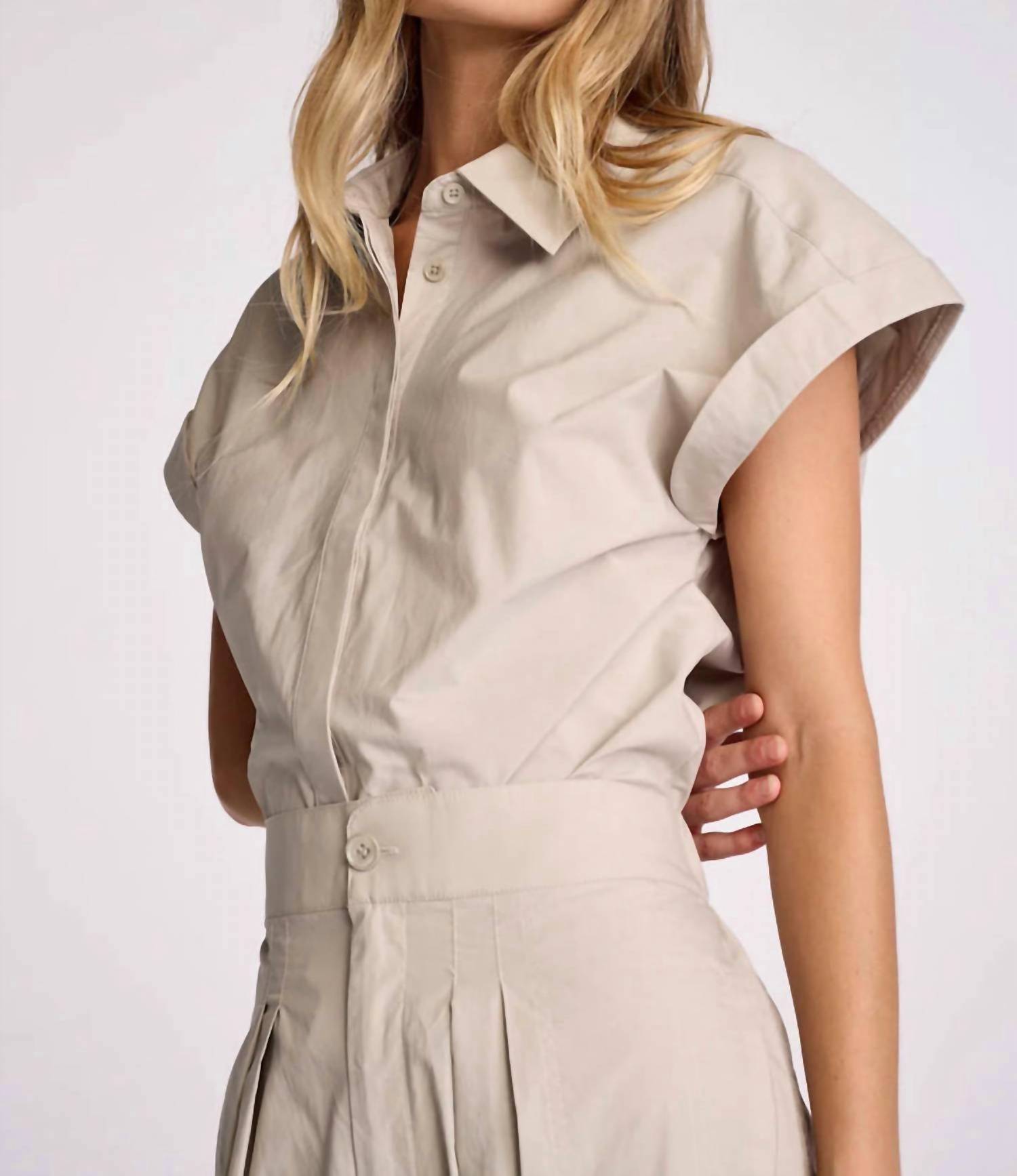This button down shirt is comfortable yet polished. Meet the Asher Collared Shirt by Sundays, an essential addition to your summer wardrobe in sophisticated Willow Grey. This women's button-up shirt is made from 100% silk finish cotton poplin, featuring cap sleeves for a touch of effortless style. Its solid pattern and collar neckline offer a clean and chic look, ideal for both vacation and Thanksgiving occasions. Care is a breeze with machine wash and tumble dry instructions, ensuring this piece maintains its elegance season after season.