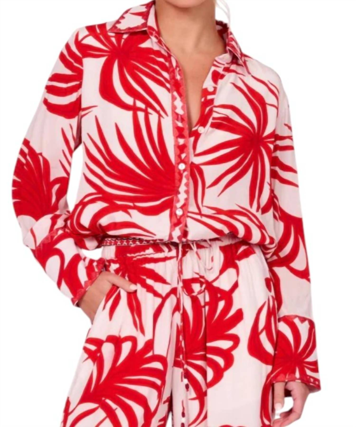 This button down shirt is comfortable yet polished. The Alana Long Sleeve Top by TAJ by SABRINA CRIPPA is a striking choice for any dinner party, especially during spring celebrations like Easter. This patterned red top features a classic collar and long sleeves, adding a touch of maximalist flair. Designed for women, it closes with buttons for a polished look. For easy maintenance, machine wash as needed.