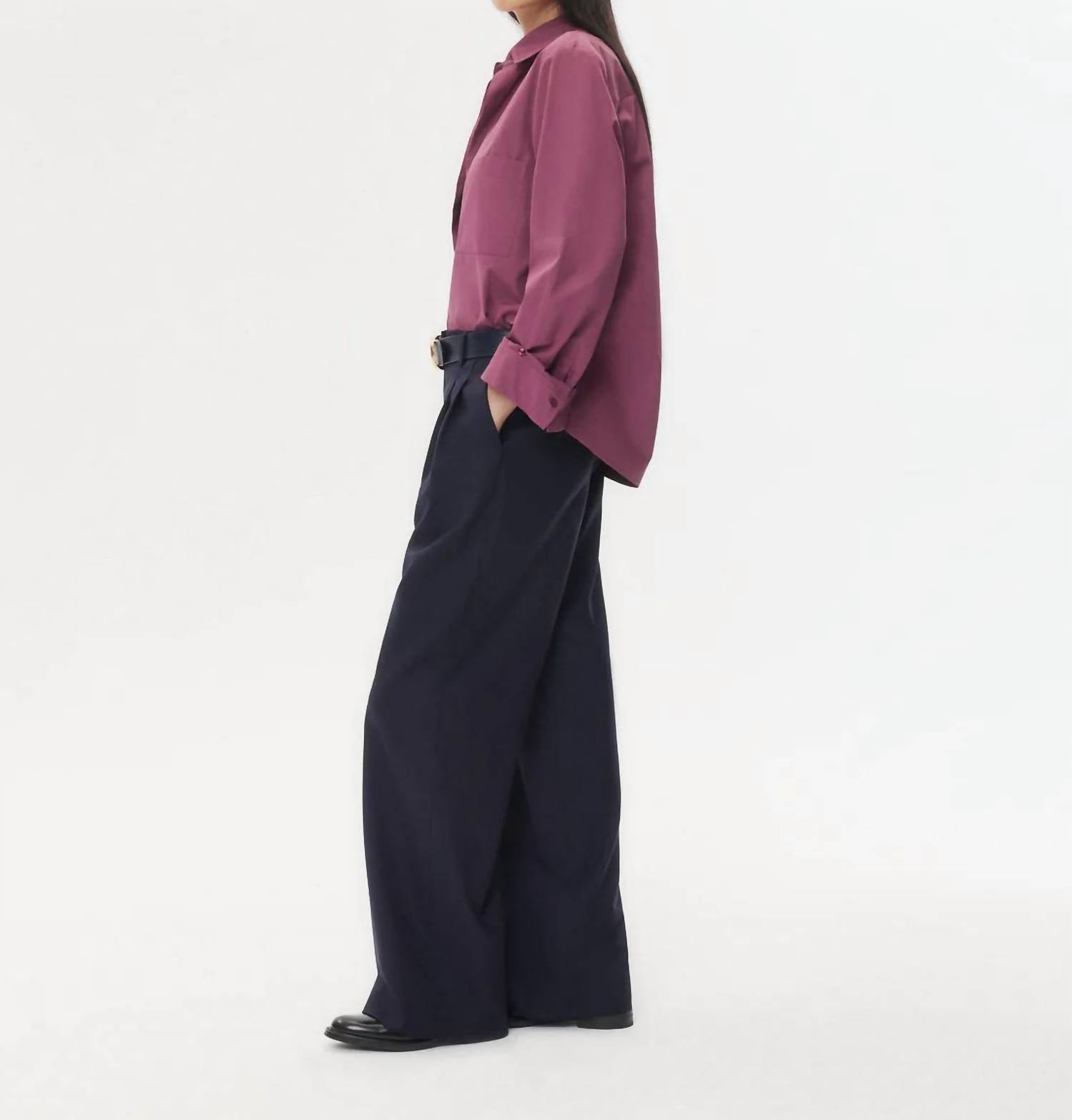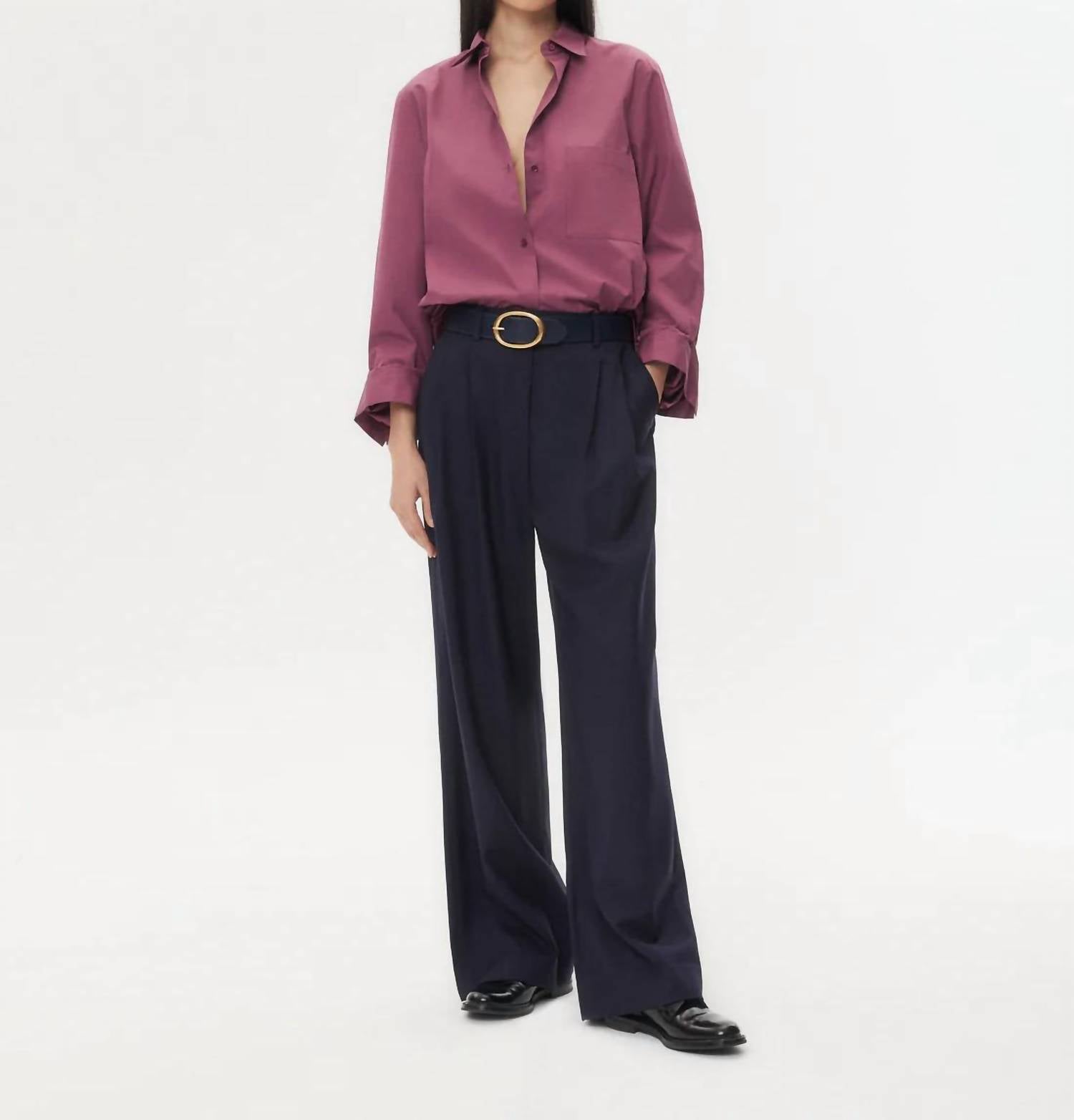 Perfectly tailored and soft to the touch. Introducing the Next Morning Crushed Shirt by TWP, a chic piece in elegant Violets designed for any holiday party. Crafted from 100% cotton poplin, this oversized, long sleeve shirt offers a structured yet smooth texture for a polished look. It features an exposed button closure, a spread collar, and a center box pleat at the back, complete with a chest patch pocket and single roll button cuffs for added detail. Pattern: Solid. The care instructions are not available.