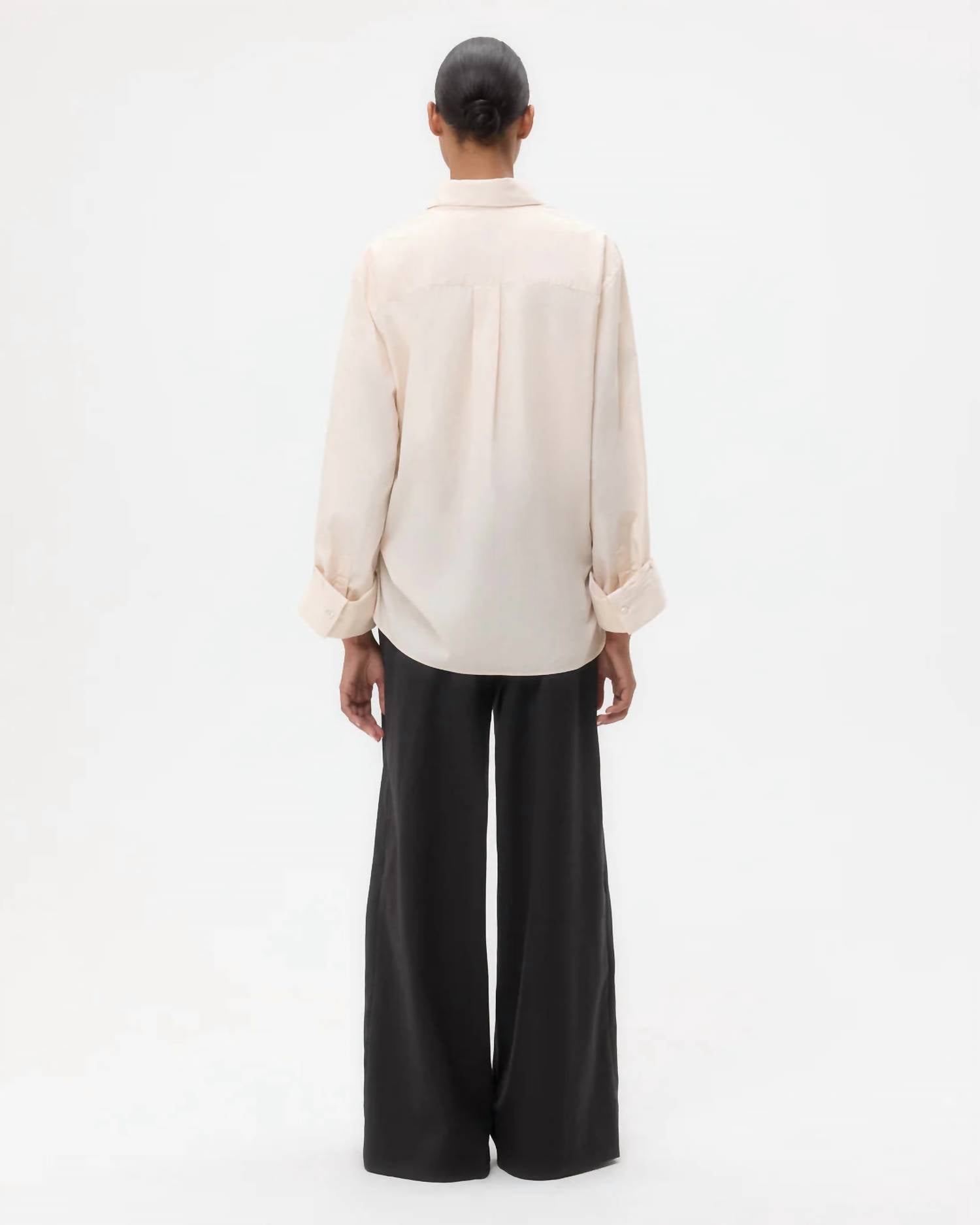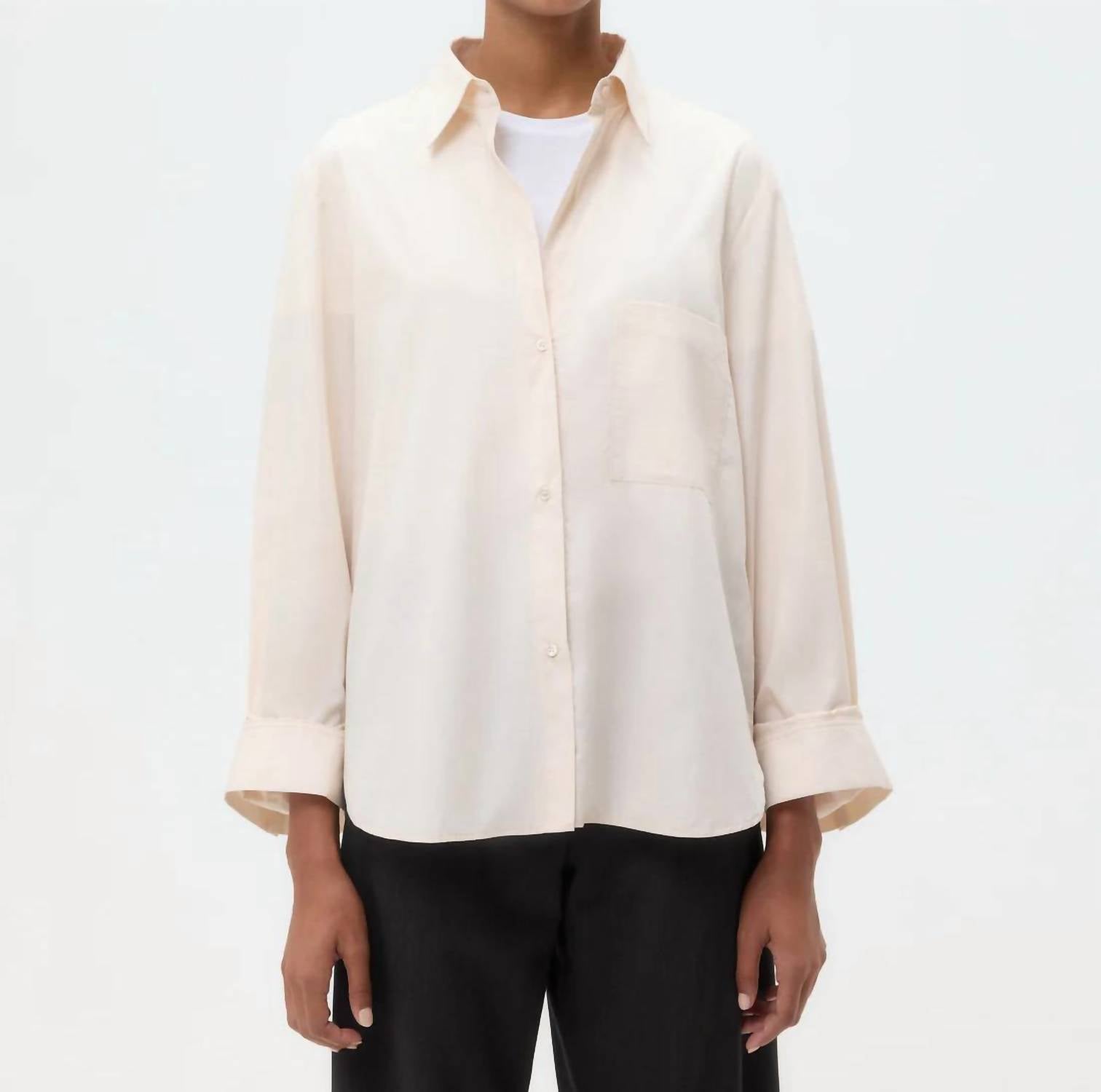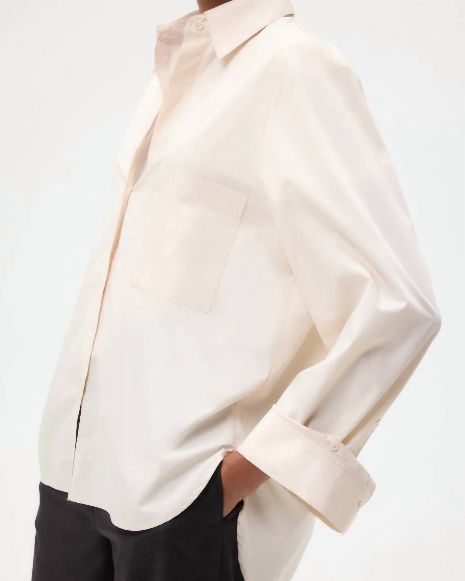 Perfectly tailored and soft to the touch. Introducing the Next Morning Shirt by TWP, a chic addition for your spring wardrobe in a delicate Pink Tint. This women's long sleeve shirt is crafted from 100% superfine Italian cotton, ensuring both comfort and elegance. It features a flattering oversized fit, complete with a spread collar, center box pleat at the back, and practical chest patch pocket. Closure is secured with an exposed button up placket, while the single roll button cuffs add a classic touch.