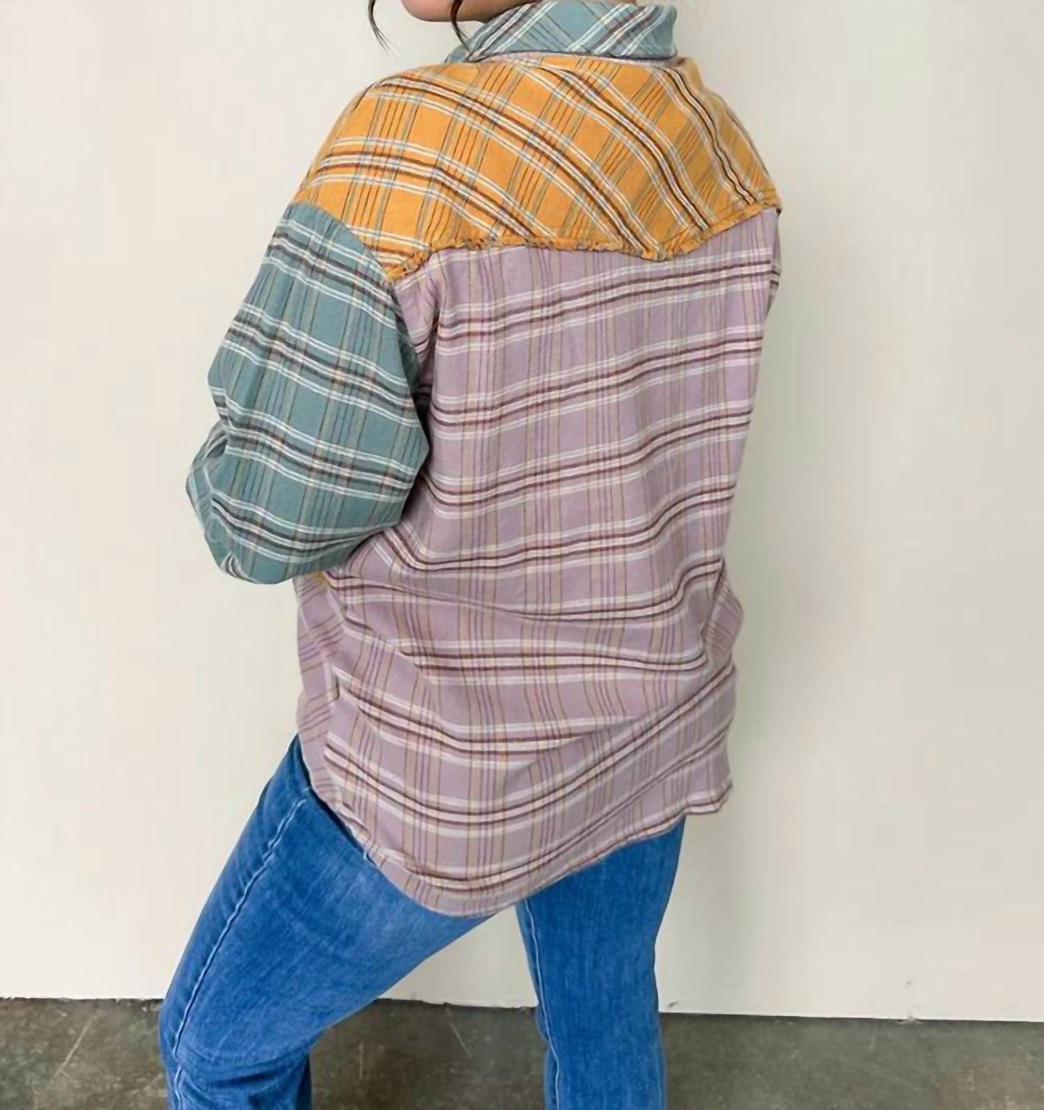 Umgee - Mixed Color Flannel Button Down Top