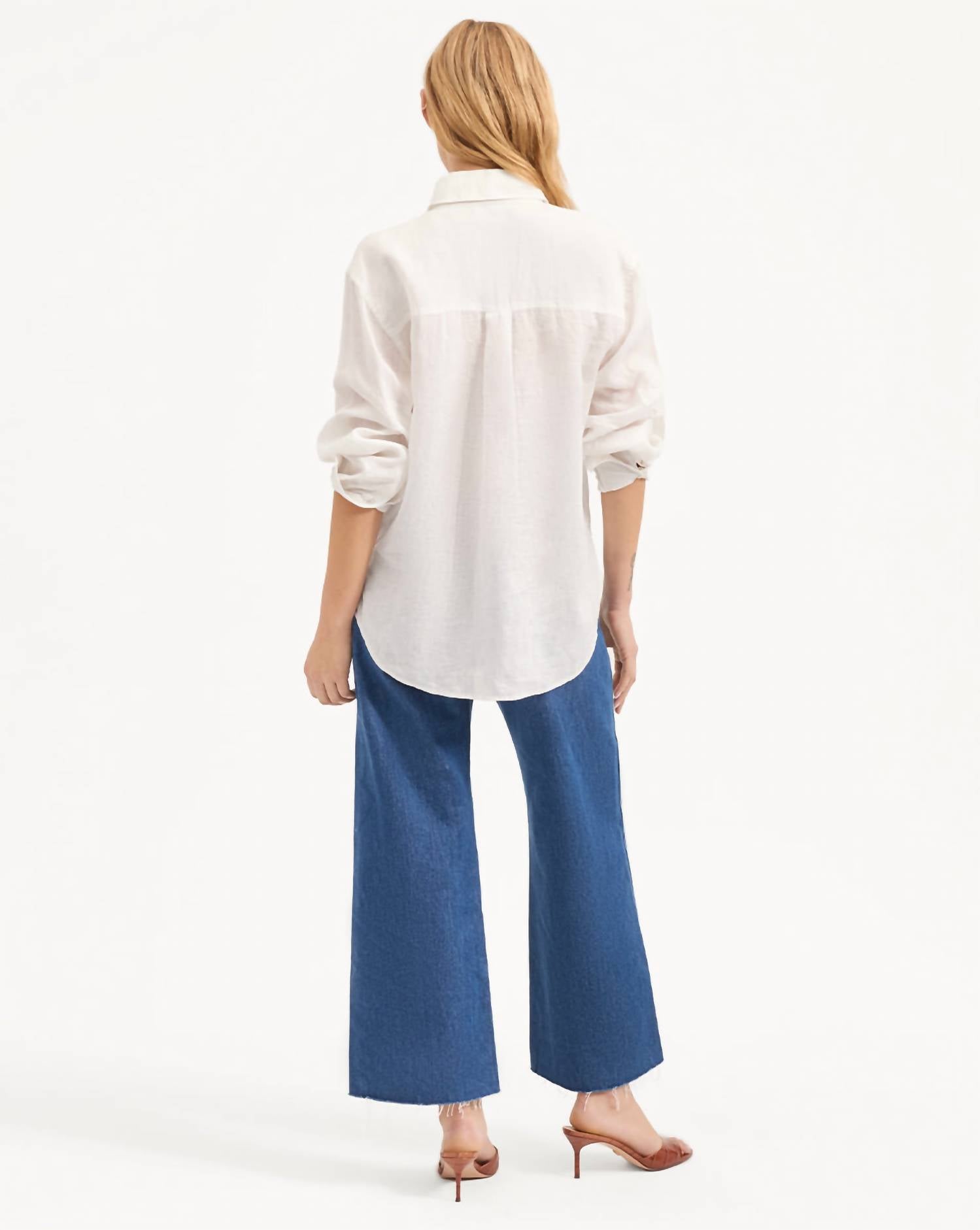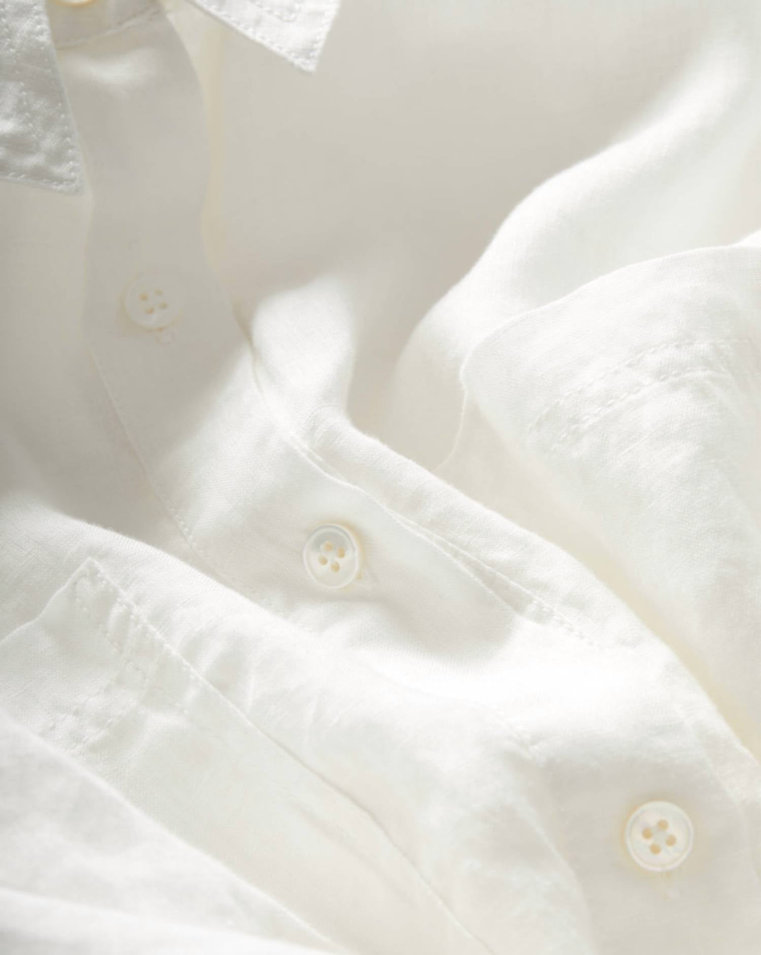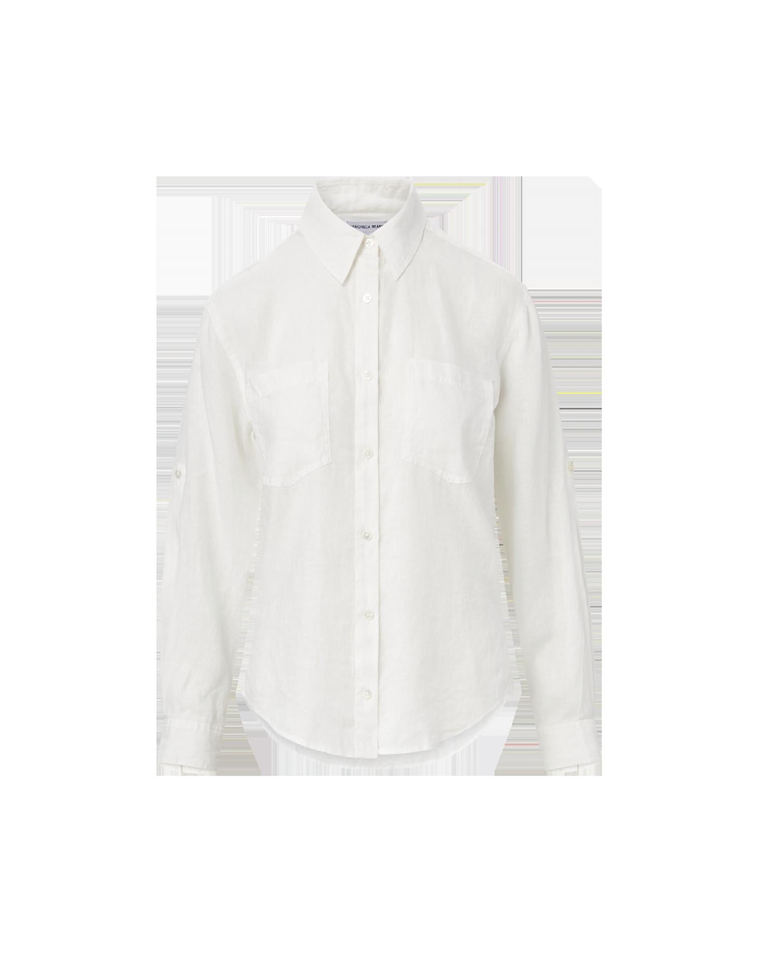 A classic button down shirt that will never go out of style. Meet the Gil Linen Shirt by Veronica Beard, an off-white button-down perfect for relaxed elegance. This expertly tailored piece is crafted from 100% linen, offering a long sleeve design with roll-tab sleeves and a 27.5" garment length. It features a solid pattern with a classic collared neckline and convenient button closure. Made for women and perfectly suited for spring workwear, this versatile shirt should be dry cleaned.