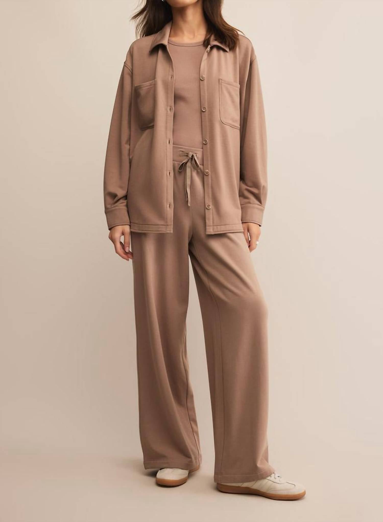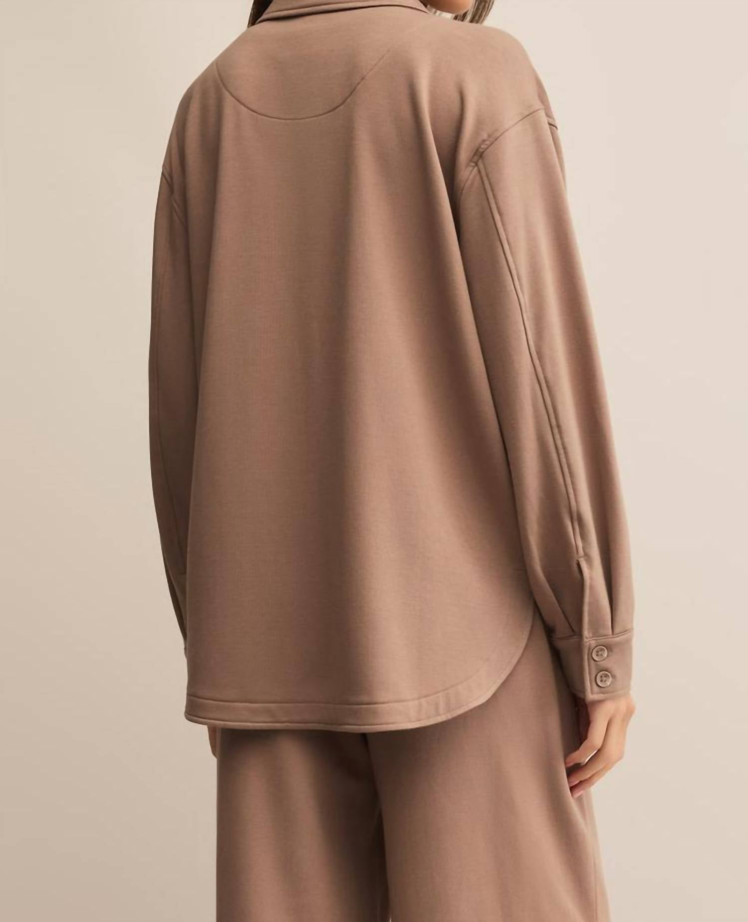 This button down shirt is comfortable yet polished. Embrace casual elegance with the Layover Modal Fleece Button Up by Z Supply, offered in Dessert Taupe. This women's button-down shirt features long sleeves and a classic collar that effortlessly elevates your streetwear ensemble. Crafted from modal, it guarantees comfort and style while the solid pattern and pockets add functionality. Enjoy easy maintenance with machine wash instructions and lay flat to dry for best results. Closure: Button closure.