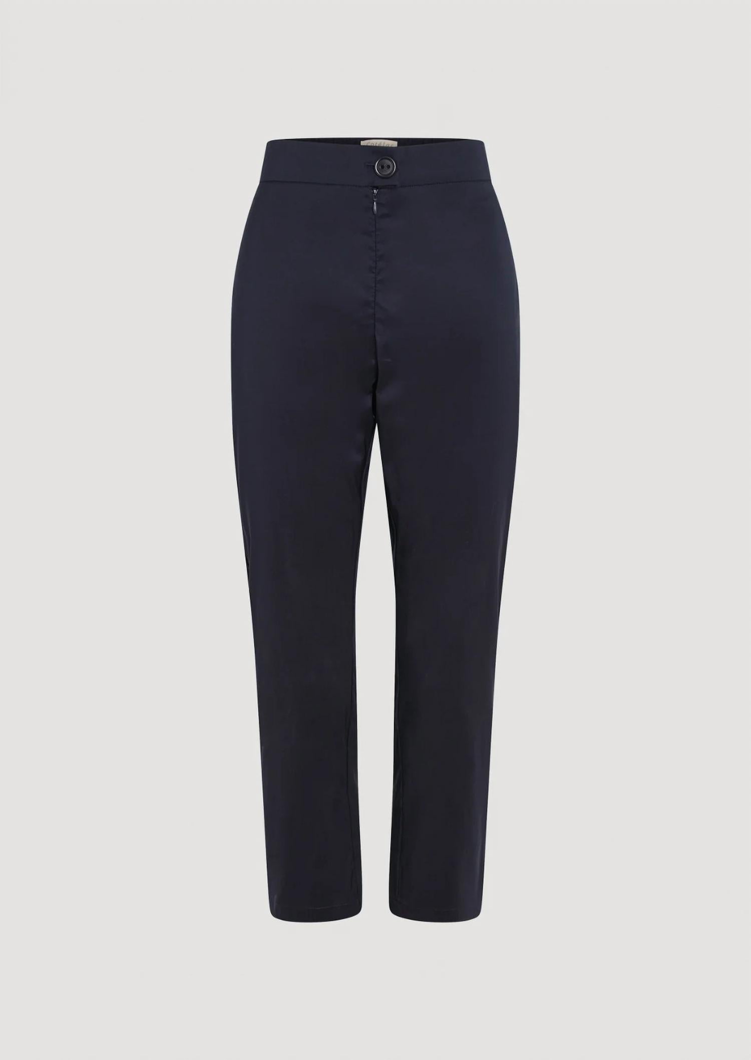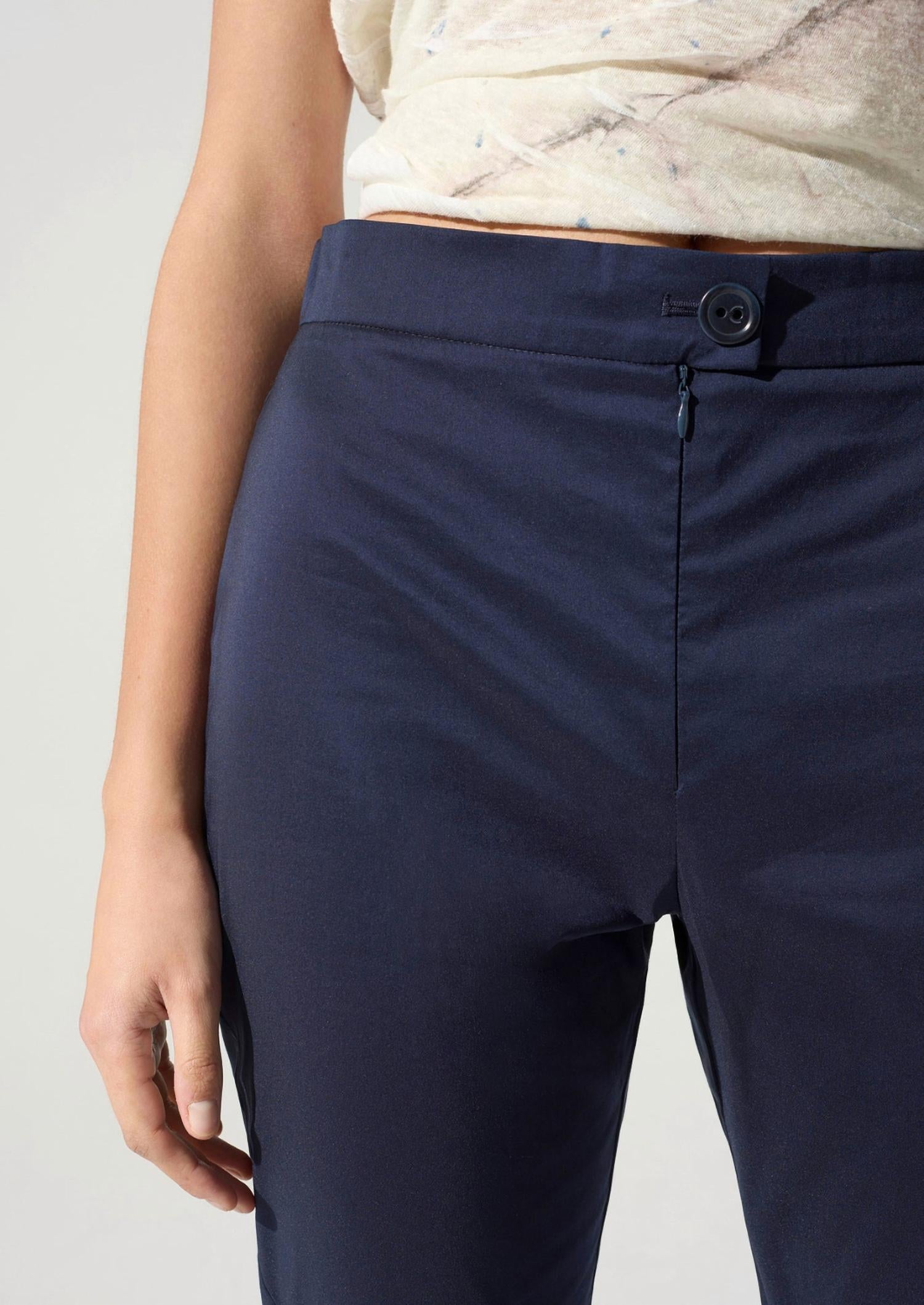The perfect capri pants for those transitional seasons. Pair them with booties or flats! Introducing the Women's Iconic Capri by Cotélac, a nod to Jackie Onassis' timeless style. These capris feature a comfort fit with a semi-elasticated high-rise waist and straight leg design. Made from a Cotélac signature blend of cotton and technical polyester for easy care, they are perfect for workwear or evening events in the summer season. Completed with a button closure, these indigo fonce capris exude elegance and comfort.
