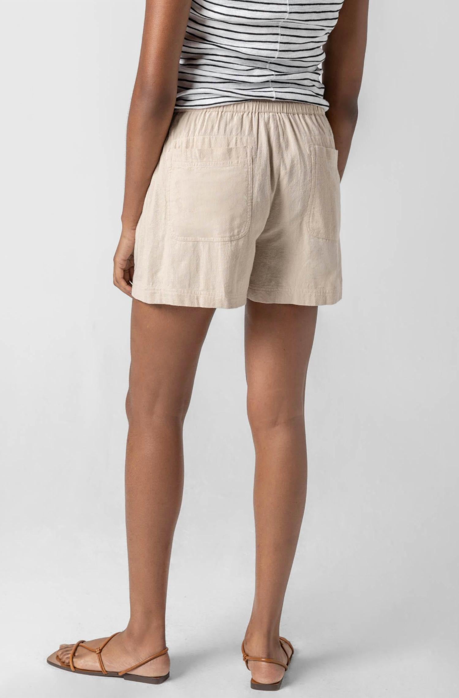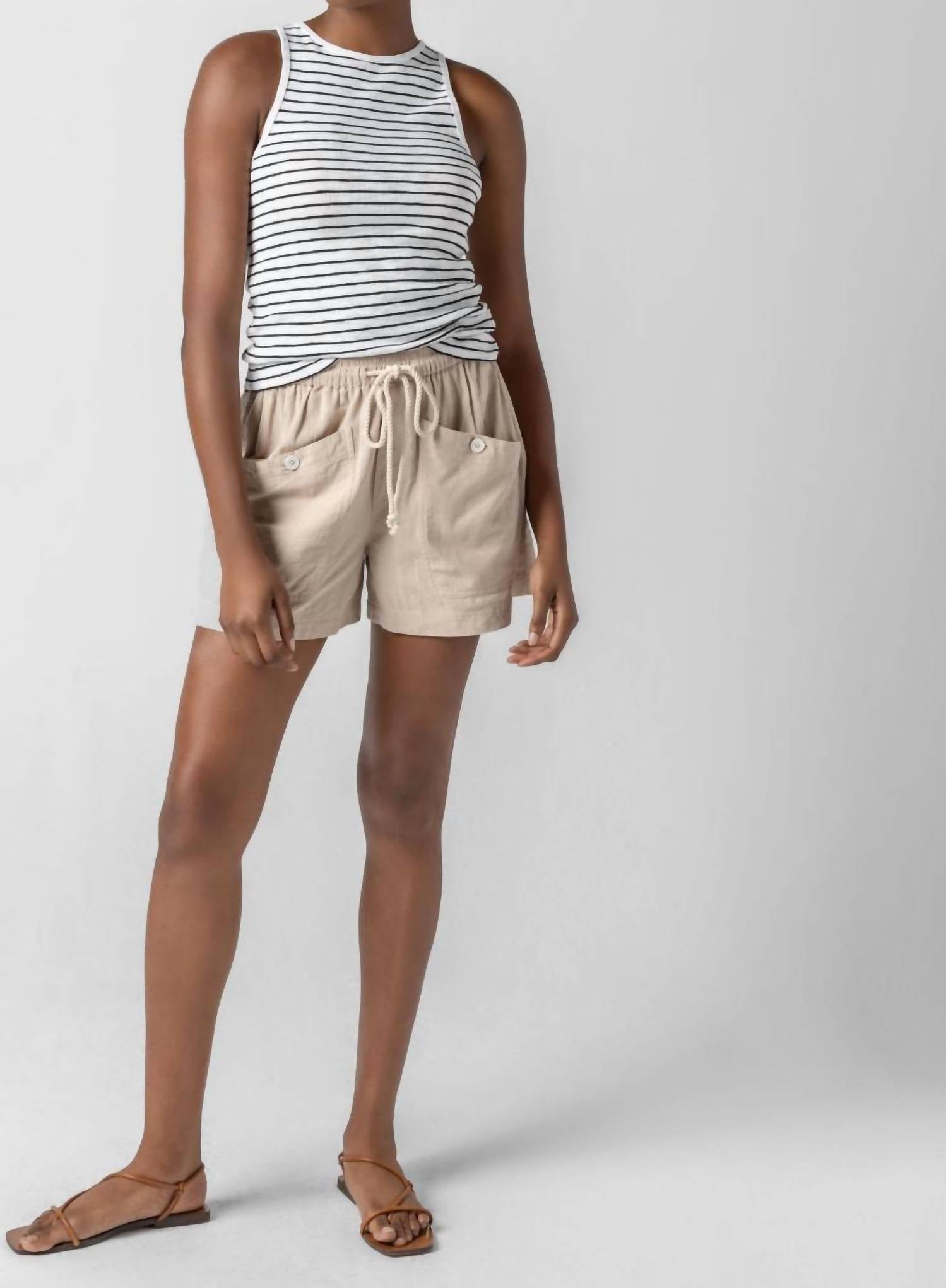 Match these cargo shorts with your favorite tank or tee for the perfect laid-back look. Elevate your summer vacation wardrobe with the Patch Pocket Shorts by Lilla P in a versatile flax color. These solid cargo shorts are designed for women and feature a practical pull-on closure complemented by multiple pockets for convenience. Made for effortless style and functionality, they are ideal for casual summer outings. Care instructions are not available, allowing for flexibility in your routine.