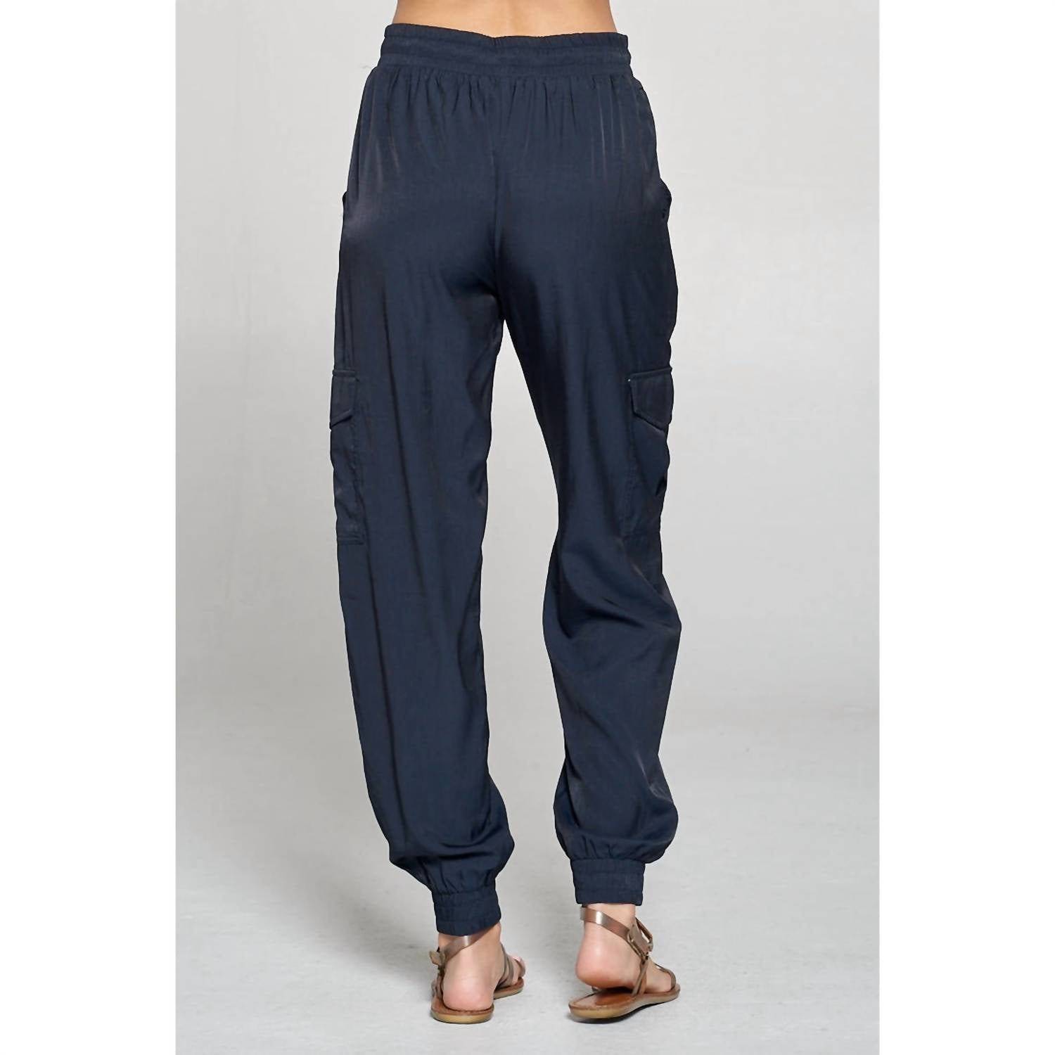 The cargo trend is here to stay and we especially love the short version of these. Introducing the Wimberly Cargo Pants by PINCH, designed for both style and functionality in a sleek navy hue. These cargos are crafted from rayon, offering a soft and comfortable wear. They feature a pull-on closure with a drawstring at the waist, slant front pockets, and additional cargo pockets for practical storage. The covered elastic waistband and cuffs add a touch of ease to your everyday look.