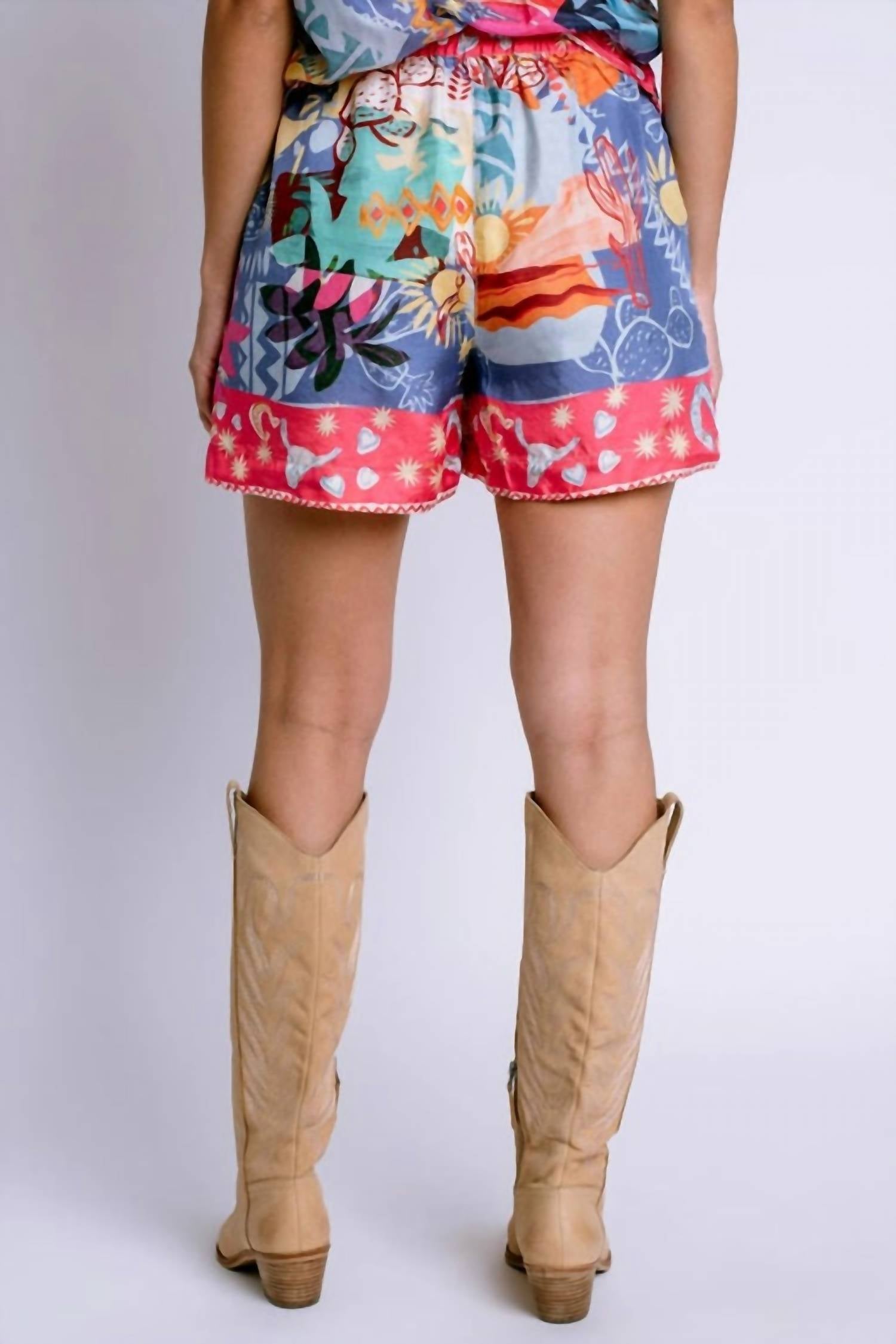 Match these cargo shorts with your favorite tank or tee for the perfect laid-back look. Make a statement in these charming silk drawstring shorts. They feature a unique all-over western abstract print, an elasticized waist, and decorative trim. The inseam is approximately 4.5 inches. Pair it with a matching, button-down Keliah Shirt to complete the look. Hand Wash