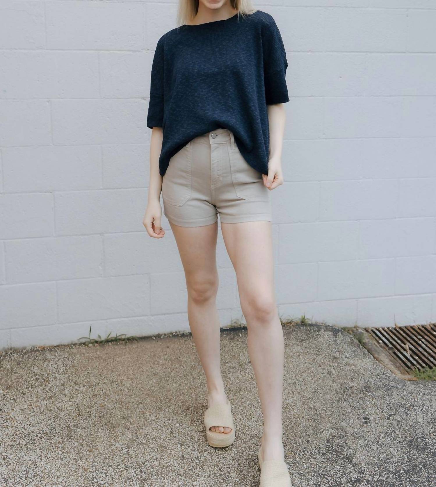 The cargo trend is here to stay and we especially love the short version of these. Meet the High Rise Utility Cargo Short by Just Black Denim, crafted from 96% cotton, 3% elasterell-p, and 1% spandex in a solid almond hue. These women's shorts are designed with a 13" length from the waist and a 3" inseam for a true-to-size fit, featuring practical front and back pockets. Closure is secure with a button and zipper setup, ideal for vacation outings or as part of streetwear. Model is styled in a size small with a 27" waist, offering a seamless transition from spring to summer adventures.
