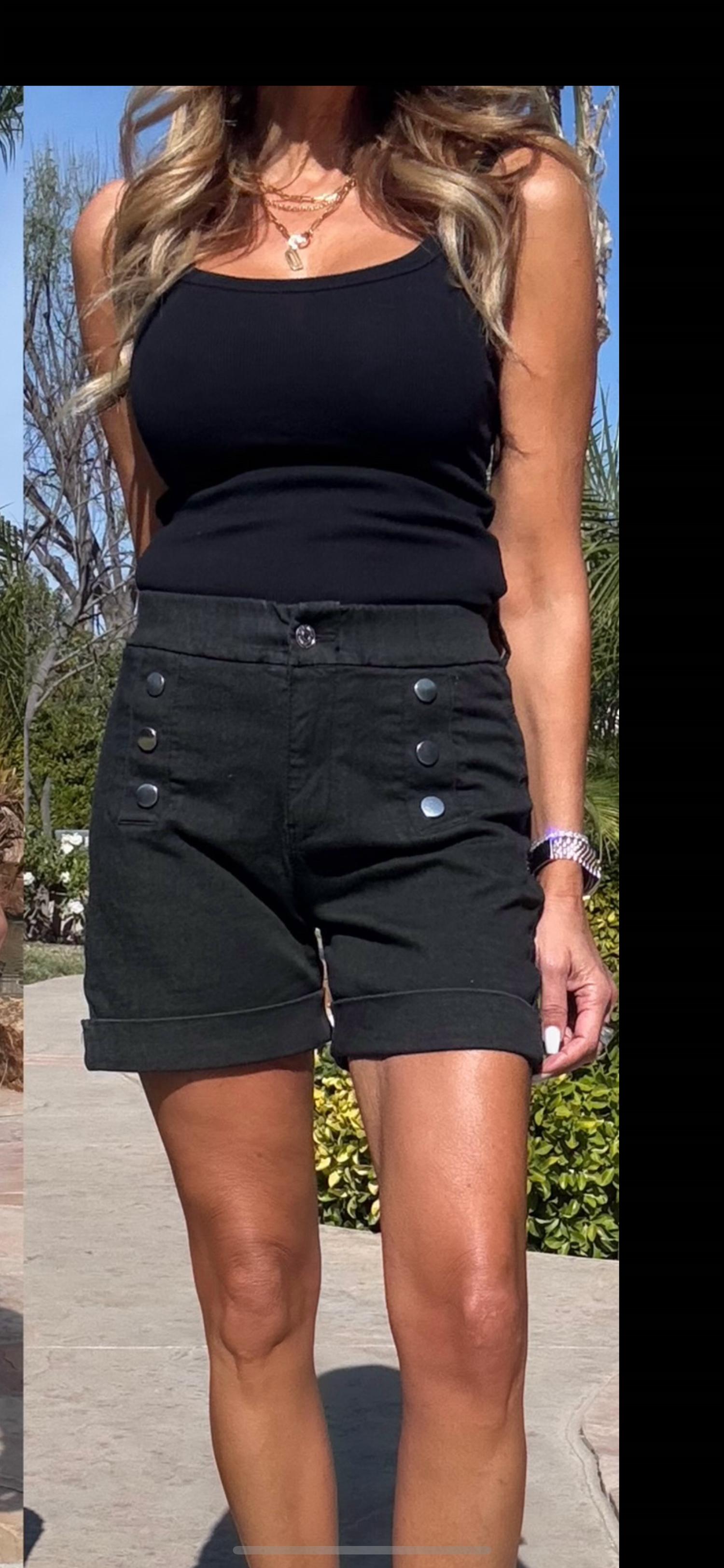 The cargo trend is here to stay and we especially love the short version of these. The perfect Golf shorts!! The Bevy Flog Elsie Shorts in blue offer a stylish blend of structure and stretch for a comfortable yet polished look. Designed with a high-rise fit and sailor-inspired button details at the front, these shorts bring an effortless edge to warm-weather dressing. The flattering silhouette features functional front and back pockets, cuffed hems, and a soft fabric with just the right amount of stretch. Dress them up with a chic blouse or keep it casual with a tank and sneakers—versatile and timeless for any occasion. machine wash, hang to dry 98% Cotton, 2% Lycra