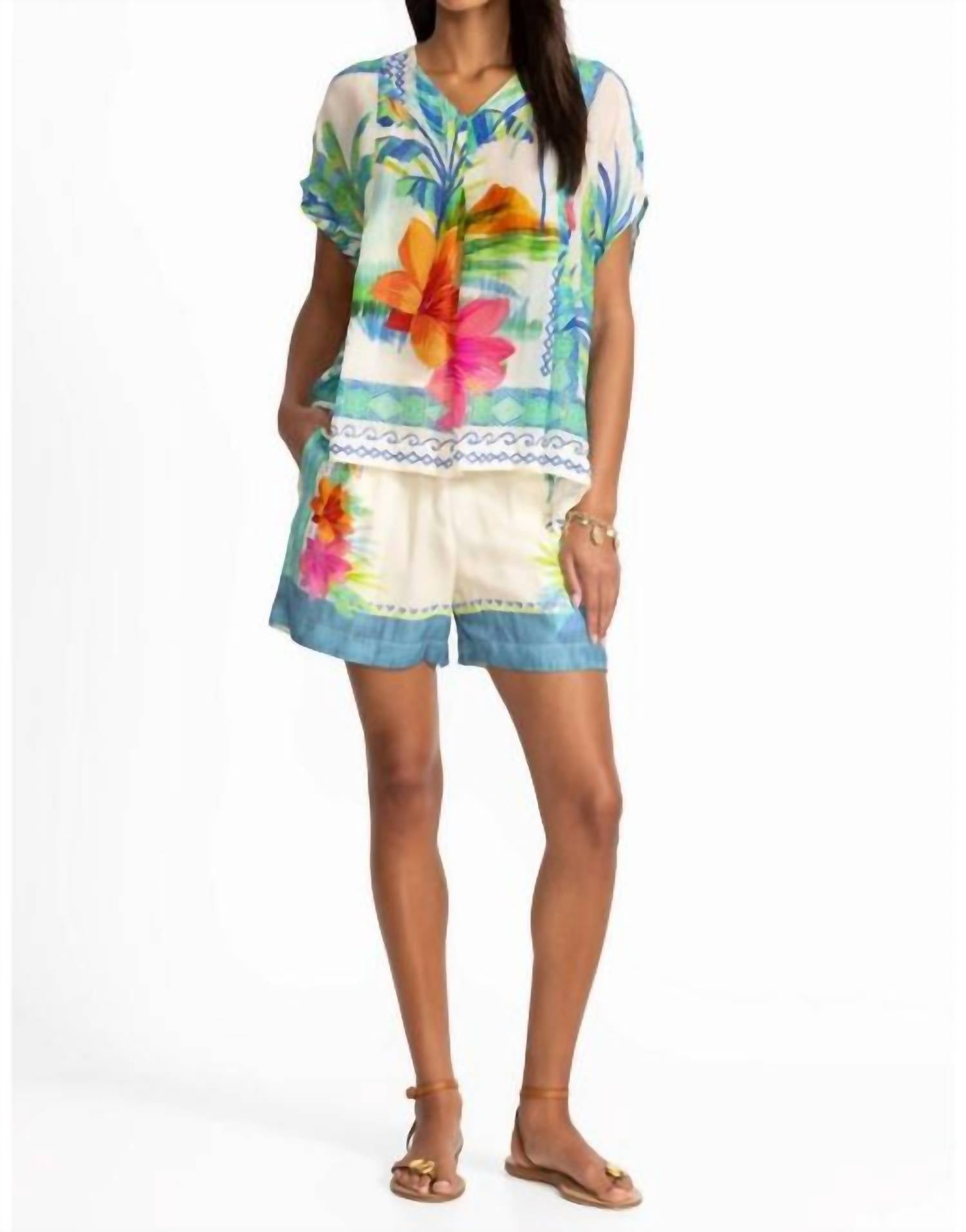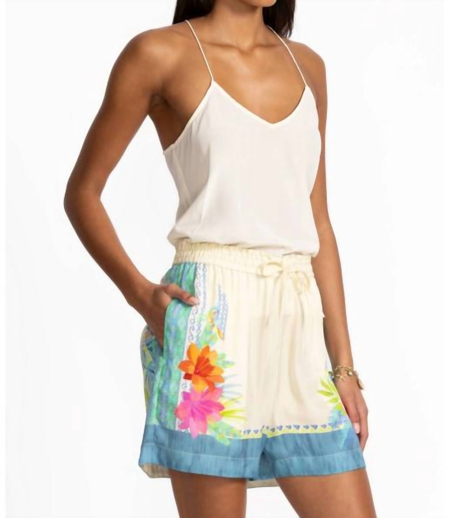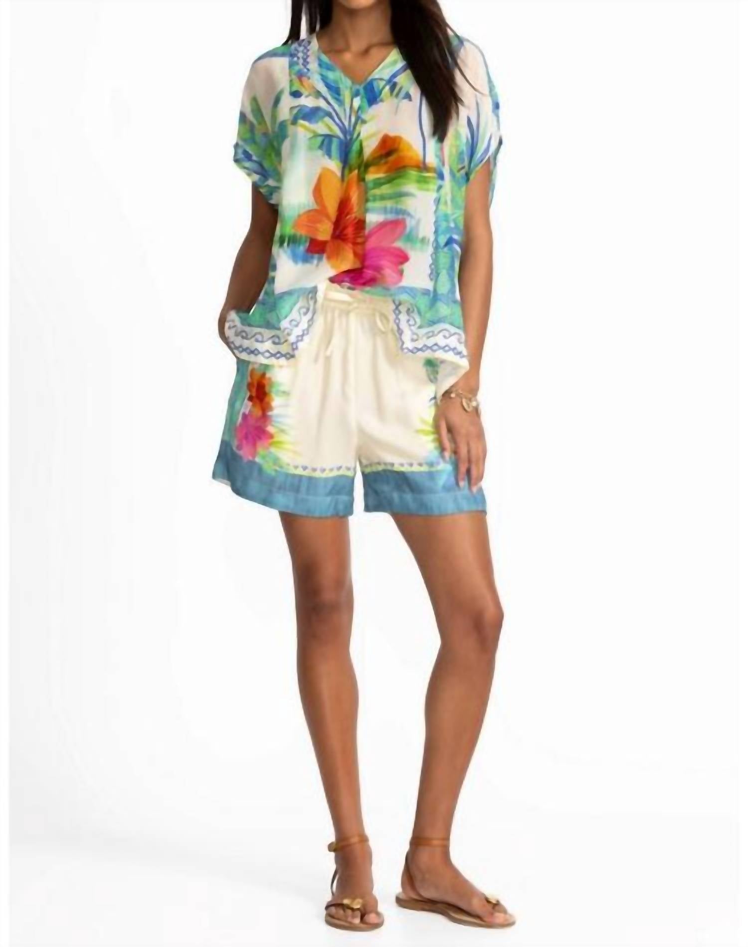The cargo trend is here to stay and we especially love the short version of these. Crafted from a lightweight, flowing fabric, the Tempest Shorts are embellished with a bold floral pattern infused with tropical color. Featuring an elastic waist with a drawstring for a customizable fit, these shorts are finished with slip pockets at the hips. Pair with a bold silk cami and beaded sandals for a resort-inspired look. Hand Wash