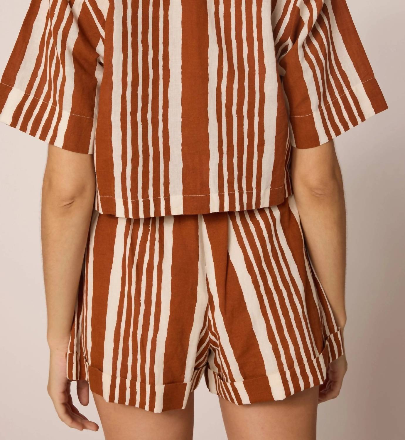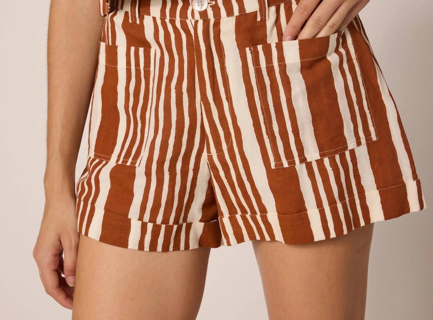 Match these cargo shorts with your favorite tank or tee for the perfect laid-back look. Elevate your Spring look with the Niko Short by Cleobella, perfect for a sustainable wardrobe in the stylish Vecchio Stripe. These stripe-patterned shorts feature a cotton linen blend of 70% cotton and 30% linen, ethically handmade in India. They are designed with welt pockets, front pockets, belt loops, and a convenient button and zipper closure. Ideal for minimalist Summer trends, they offer a chic look for any holiday party occasion.