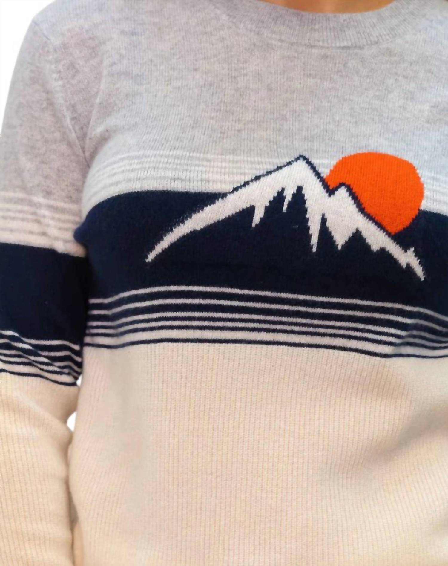 Introducing the "Hit The Slopes" Sweater by Autumn Cashmere, the perfect blend of warmth and refinement for your winter wardrobe. This long sleeve sweater showcases a serene mountain and sunset landscape pattern in a neutral combo, making it suitable for both ski trips and leisurely outings. With a classic crewneck and pull-on closure, it offers ease and comfort. Crafted for women, it is machine washable, catering to minimalist trends and ideal for spring and Easter occasions.