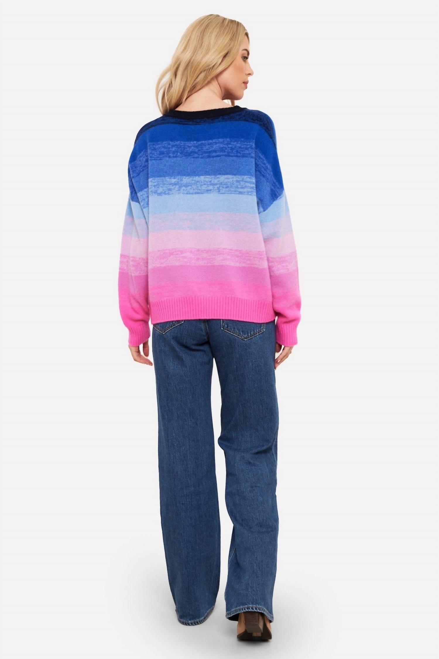 The ultimate go-to sweater, expertly crafted to provide the perfect combination of warmth and style. Its classic design and soft fabric make it a must-have addition to your wardrobe. Indulge in the luxurious comfort of the Fade Cashmere Crew Sweater by Brodie Cashmere, a must-have for your fall wardrobe. This sweater boasts long sleeves and a chic gradient pattern transitioning from blue to pink, complete with a classic crewneck. Material: 100% Cashmere. Closure: Pull on. Care instructions: Machine wash and tumble dry. Perfect for occasions ranging from Thanksgiving to travel in preppy style.