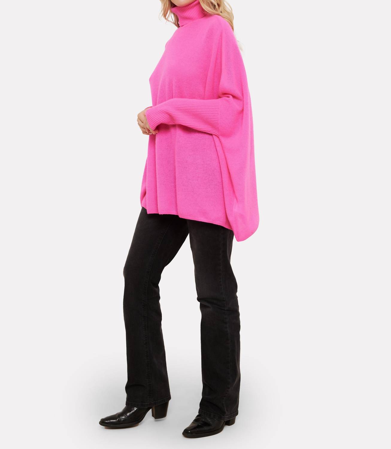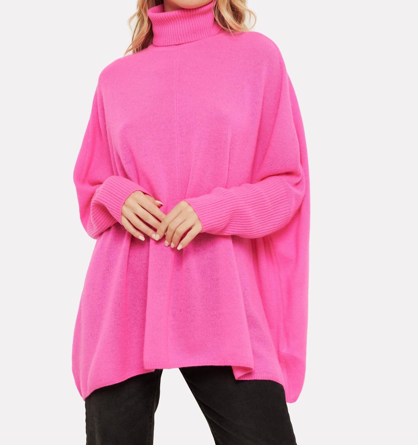 Elevate your spring wardrobe with the Jojo Poncho by Brodie Cashmere, enveloping you in luxurious Diva Pink. This women's poncho features long sleeves and a cozy roll neck, crafted from 100% grade A Mongolian cashmere for a plush feel. Designed in a solid pattern with a pull-on closure, it's both fashionable and functional, ideal for travel or casual outings. Care for this oversized fit easily at home with machine wash at 30°C and tumble dry as needed.
