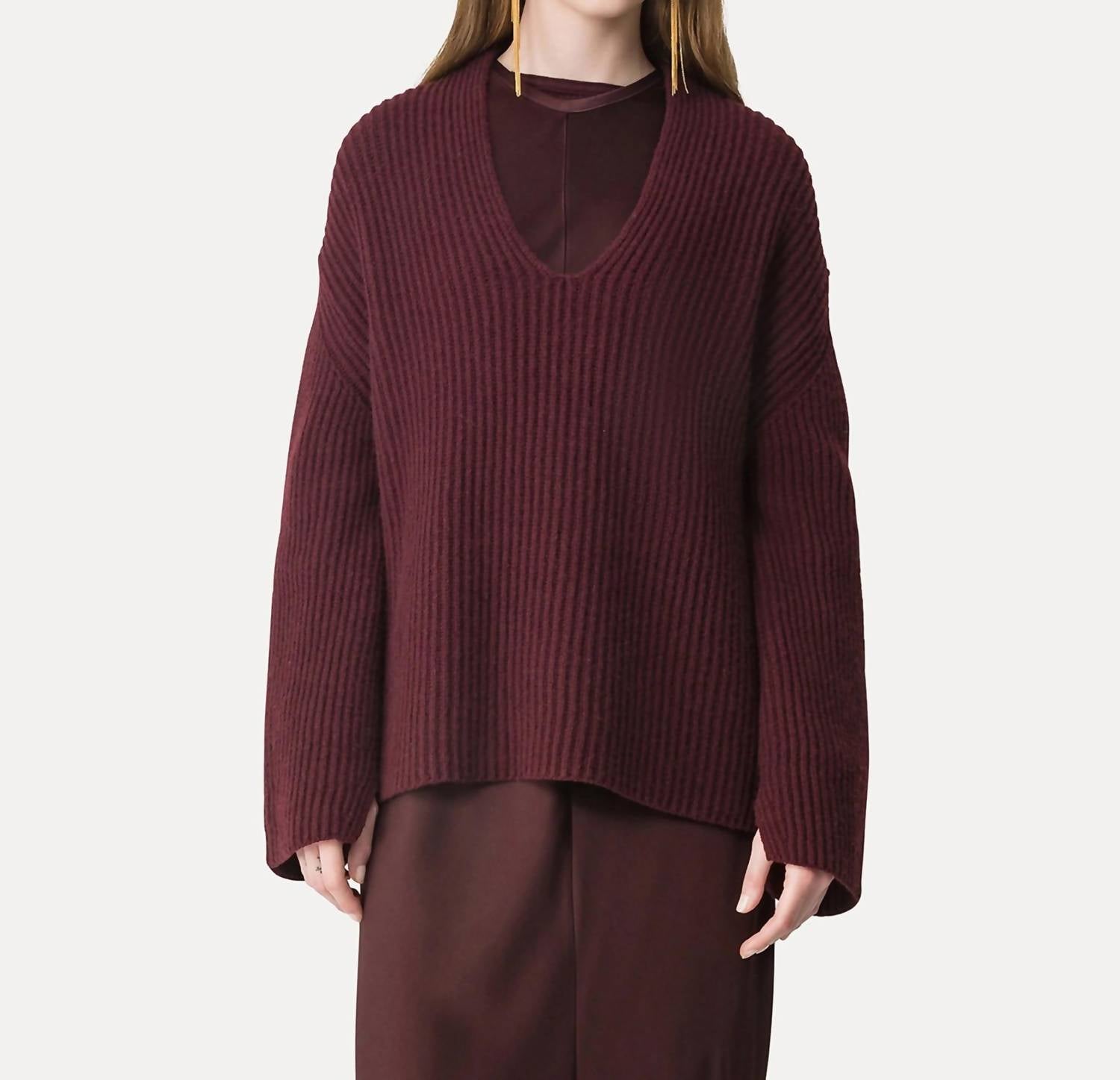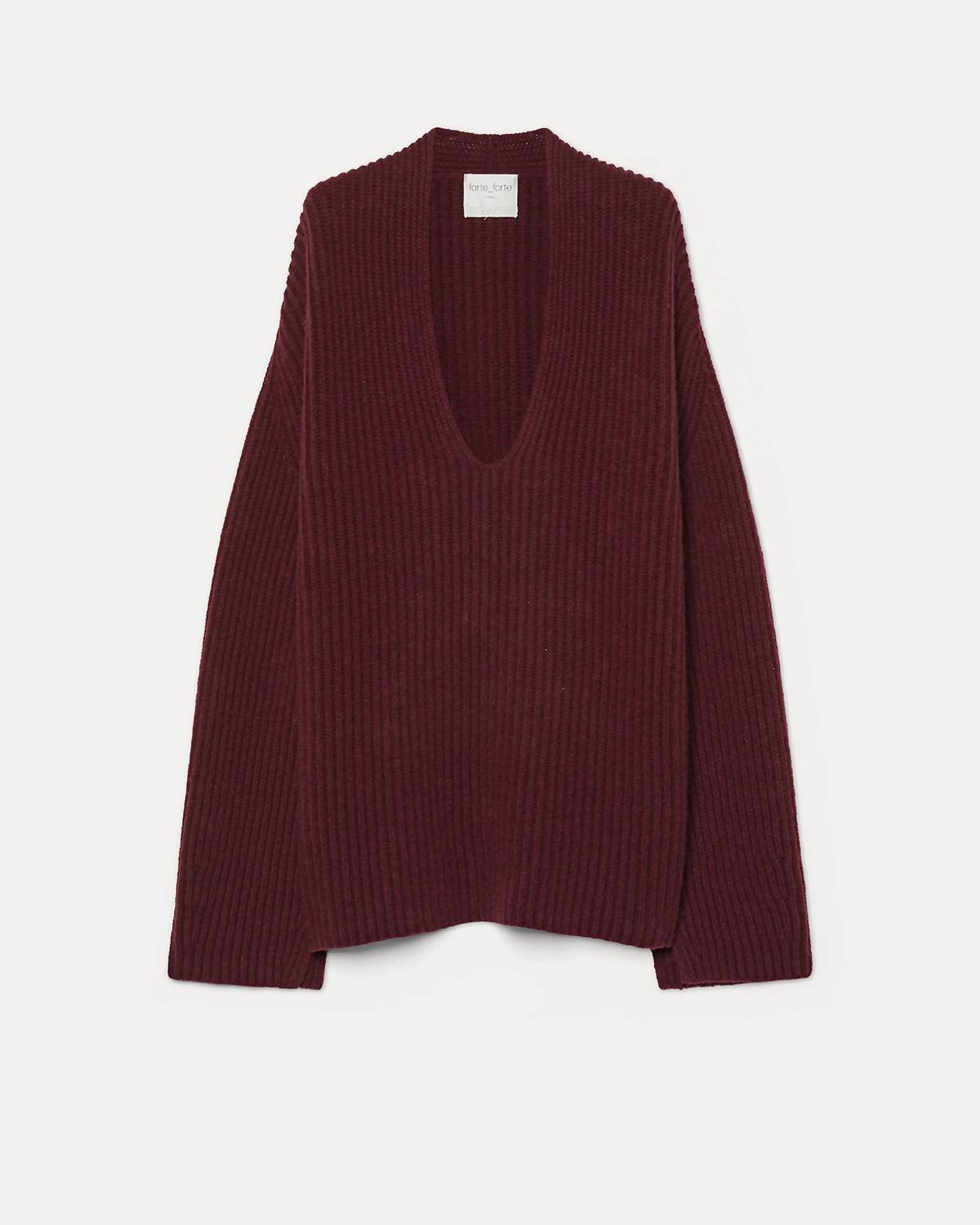 You'll be reaching for this comfy and classic v-neck sweater all season long. Experience the luxurious comfort of the Forte Forte Wool And Cashmere Knit Sweater in Bordeaux, designed with a soft, textured half-fisherman’s rib pattern. This Italian-made piece combines 90% virgin wool and 10% cashmere for a cozy feel that embraces you all day long. With long sleeves and a classic V-neckline, it features a pull-on closure, ideal for a chic yet effortless look. Care instructions include professional dry cleaning and flat drying, ensuring the longevity of this exquisite garment, perfect for a fall travel wardrobe.