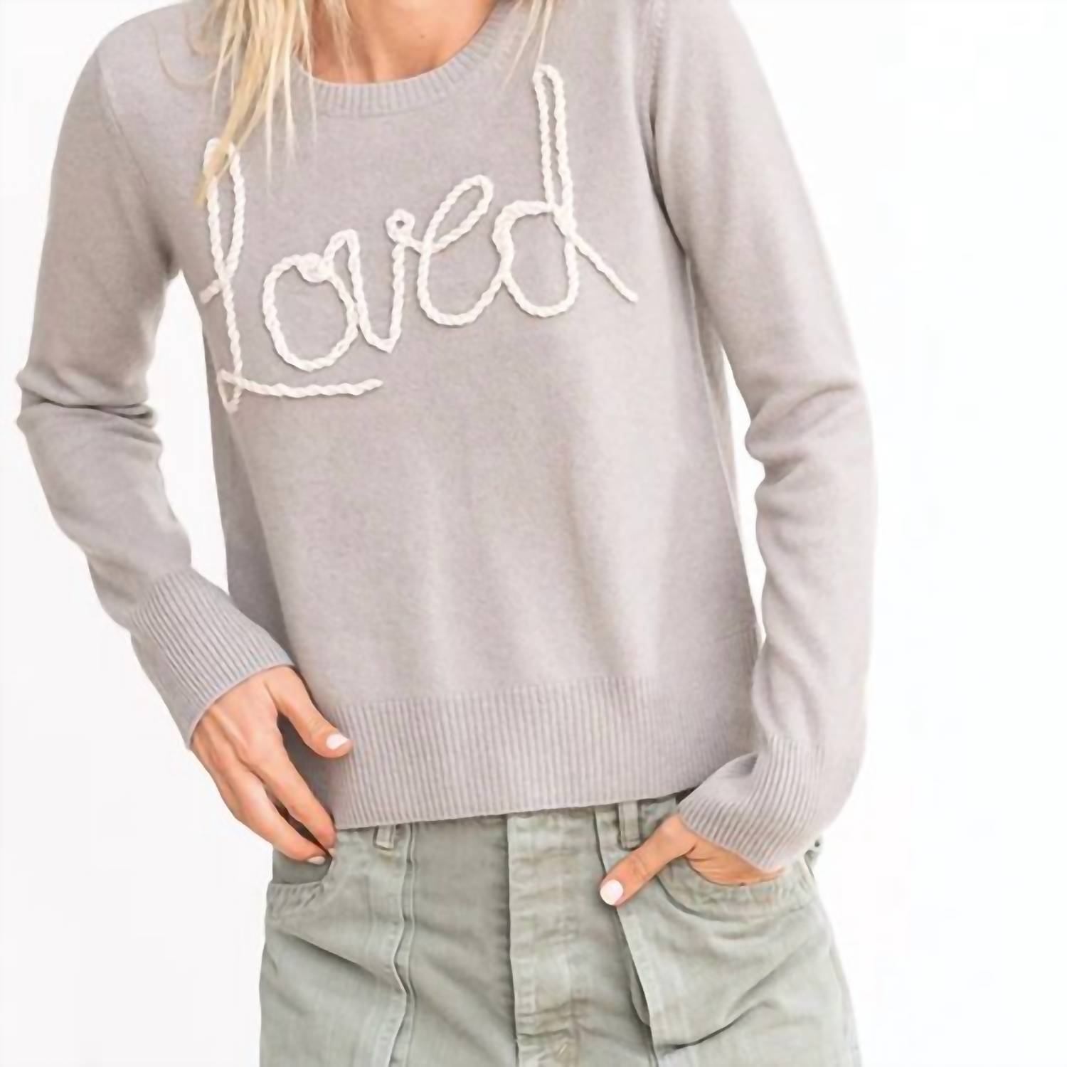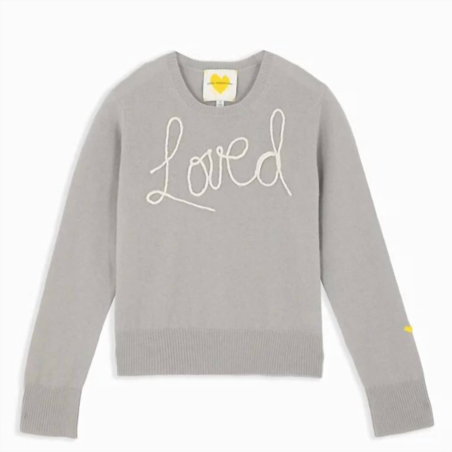 Stay warm and stylish in this versatile and effortlessly cool knitwear staple. Wear it alone or layered, it's the perfect sweater for the season and you'll wish you had it in every color. The KERRI ROSENTHAL Liz Love Sweater in Stardust brings sophistication to your wardrobe with its long sleeves and luxurious composition of 100% lightweight cashmere. Adorned with Kerri’s 'LOVED' embroidered artwork on the front, this sweater offers a pull-on closure and promises a perfect fit with its 22-inch front length in size small. Crafted with a solid pattern design, it's imported to ensure premium quality. Care instructions recommend dry cleaning to maintain its exquisite softness and style.