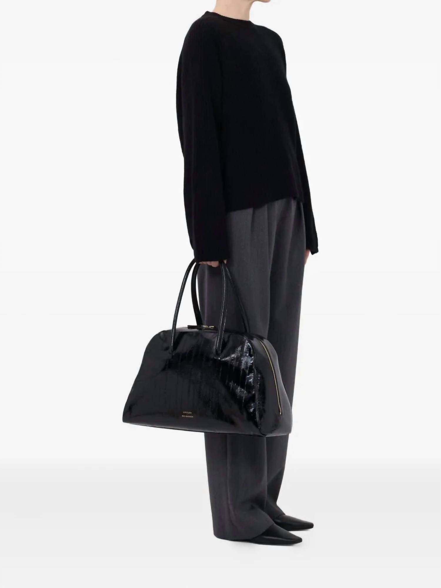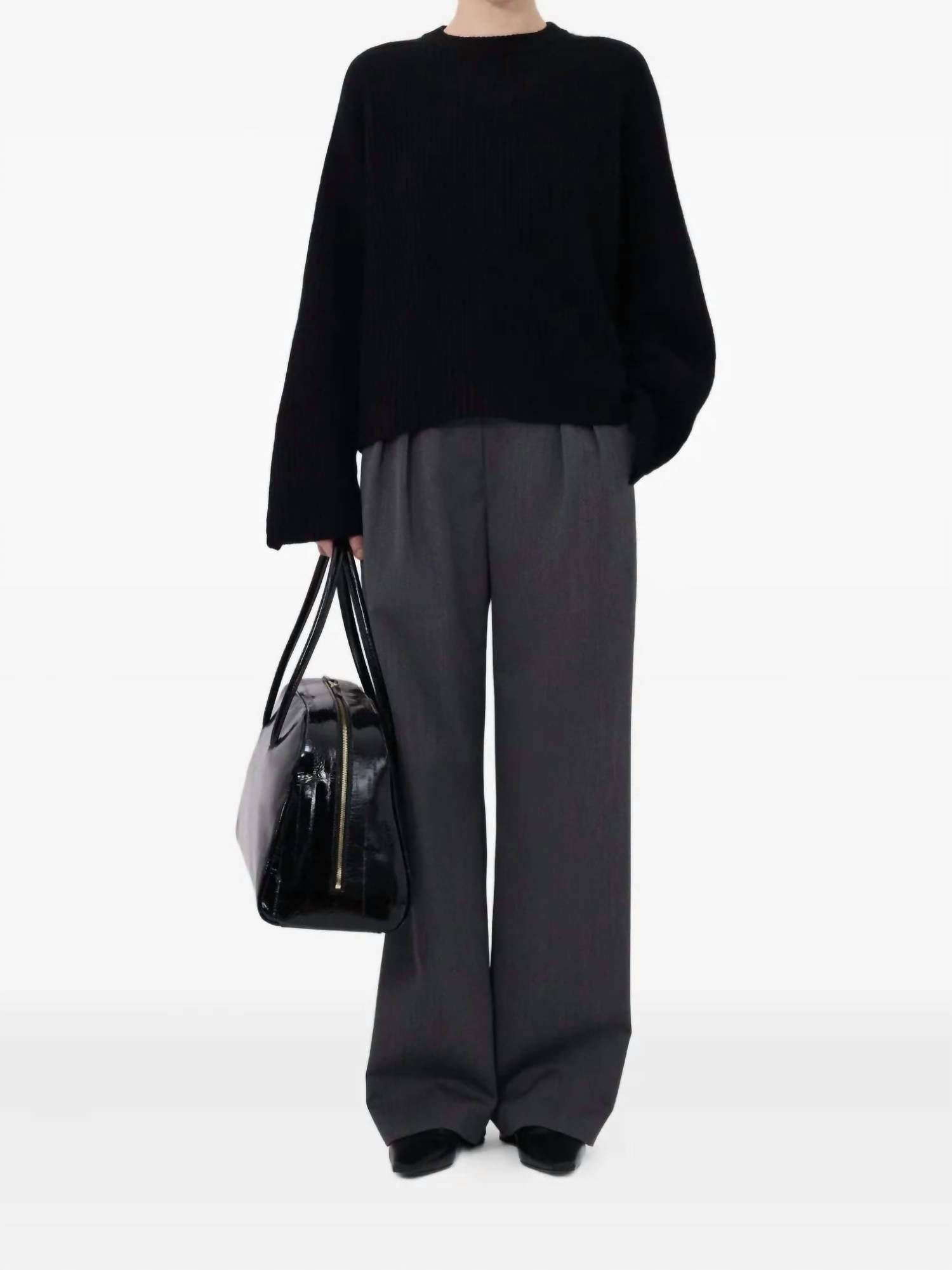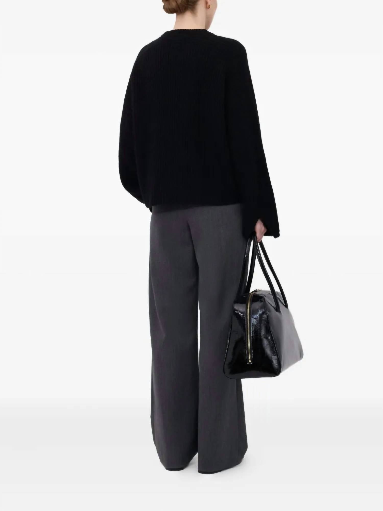 Experience the perfect blend of comfort and style with this trendy crew neck sweater, designed to effortlessly elevate your wardrobe. Pair it with your favorite denim and loafers for the perfect look. Elevate your wardrobe with the Axel Ribbed Cashmere Sweater by Loulou de Saison, a luxurious addition in solid black. Crafted with long, flared vented sleeves and drop shoulders, this piece offers an ample fit for ultimate comfort. Made of 100% cashmere, it showcases a minimalist design with a crewneck, ideal for versatile styling. Originating from Italy, it's a pull-on sweater perfect for vacation-ready apparel.