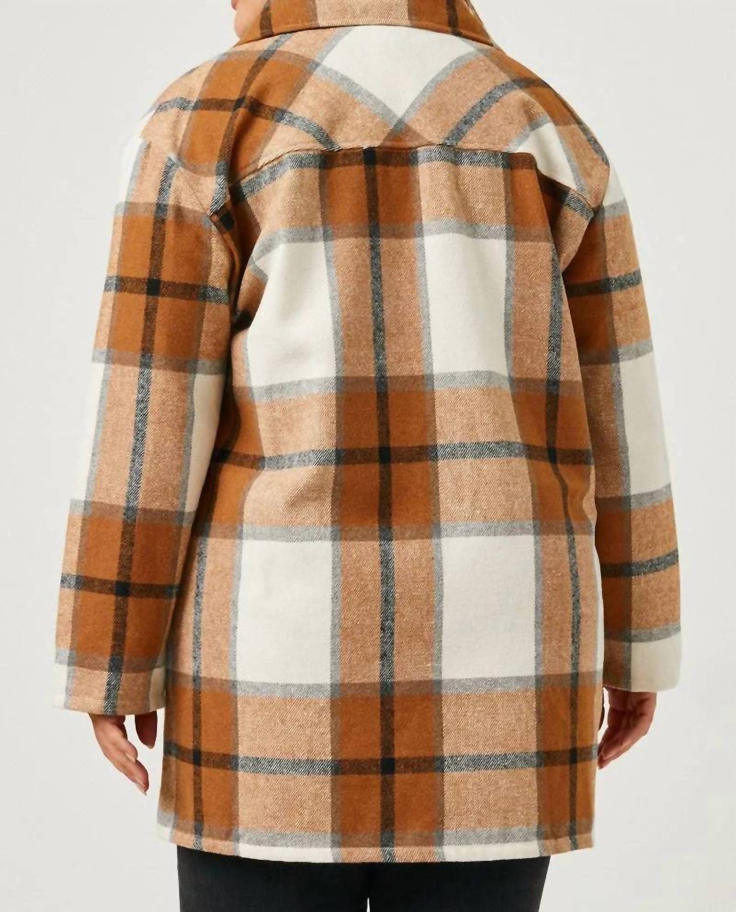 Plaid woven fabric. Functional button up. Long sleeves. Measurements: XL - 35", 2XL - 35.75", 3XL - 36.5". 65% Polyester 35% Cotton. Hand wash cold. Hang dry.