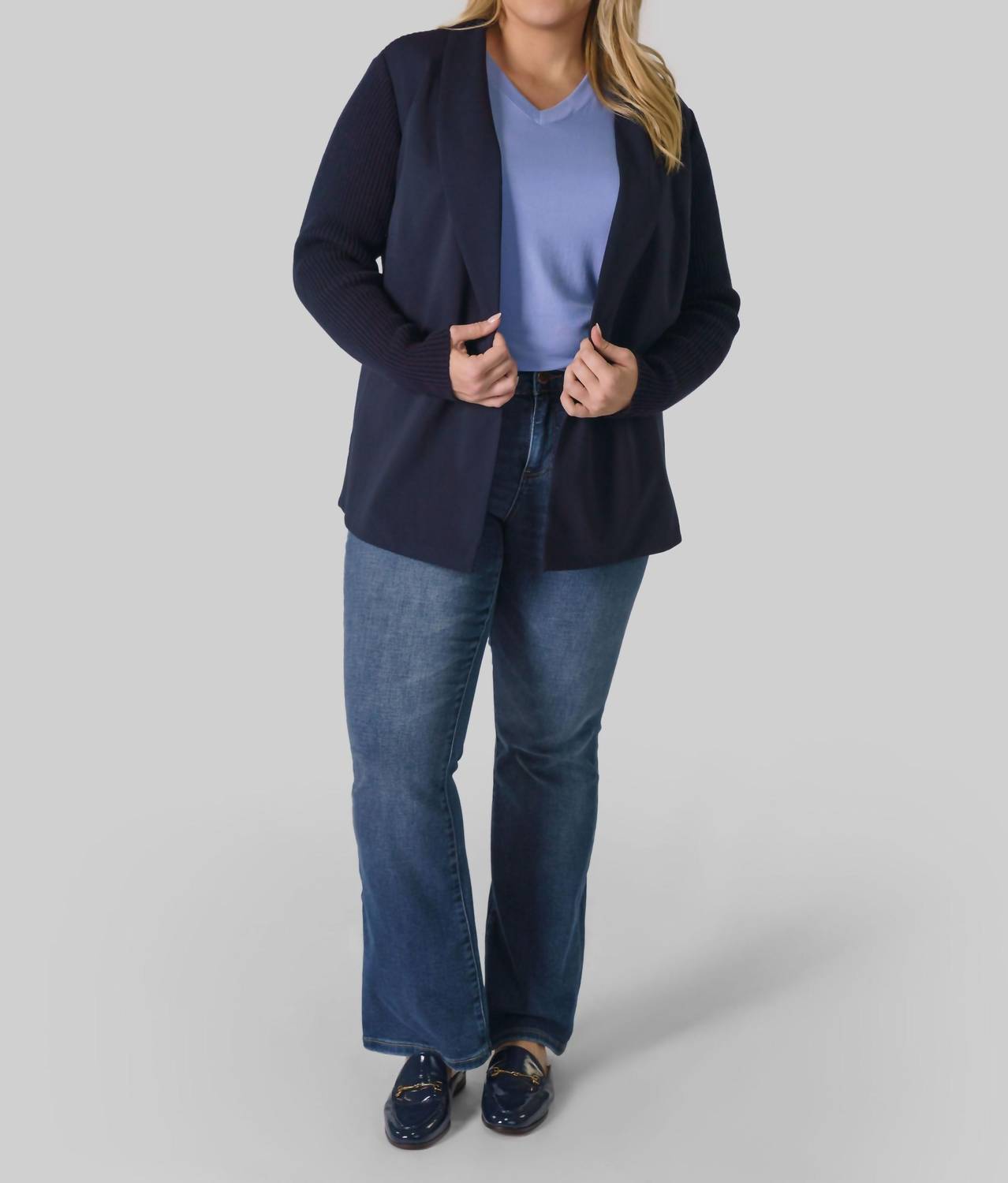 A jacket so versatile you can literally wear it with anything. Introducing the Columbia Jacket by Capsule 121, a must-have for Fall in versatile navy. This plus-size women's casual jacket features long sleeves and a sweater-like back for added softness and warmth on breezy days. It is made from high-quality Rayon and has a convenient pull-on closure, perfect for those on-the-go moments. Care for your jacket with ease by hand washing and line drying.