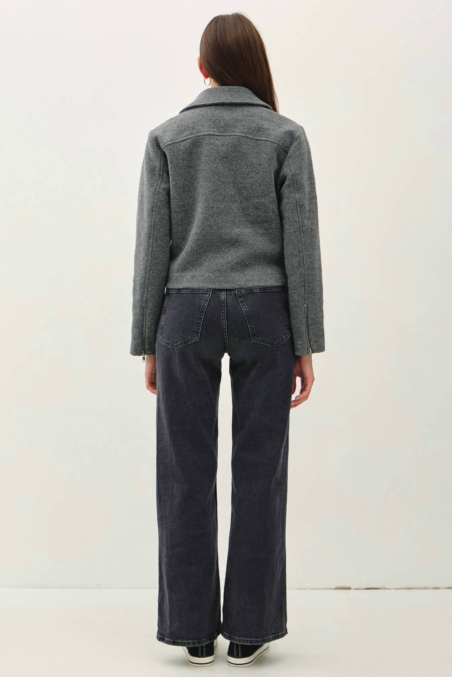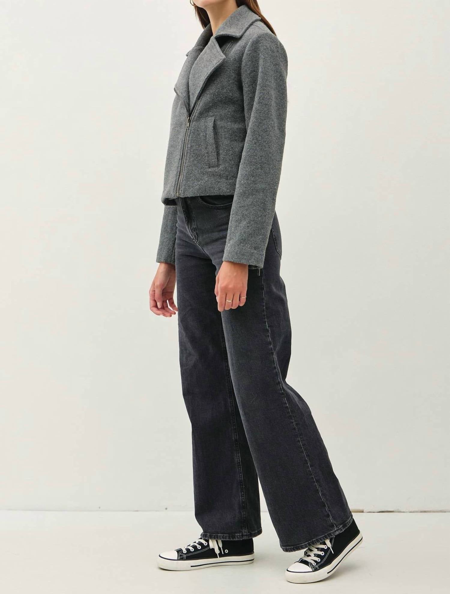 A jacket so versatile you can literally wear it with anything. Introducing the Be Cool Cropped Moto Style Jacket in a chic Charcoal, perfect for minimalist style with a touch of edge. This jacket features long sleeves, a classic notched collar, and a convenient zip closure for easy wear. Designed without lining and pockets, it offers a sleek, streamlined look. Ideal for a Thanksgiving dinner party or any spring occasion.