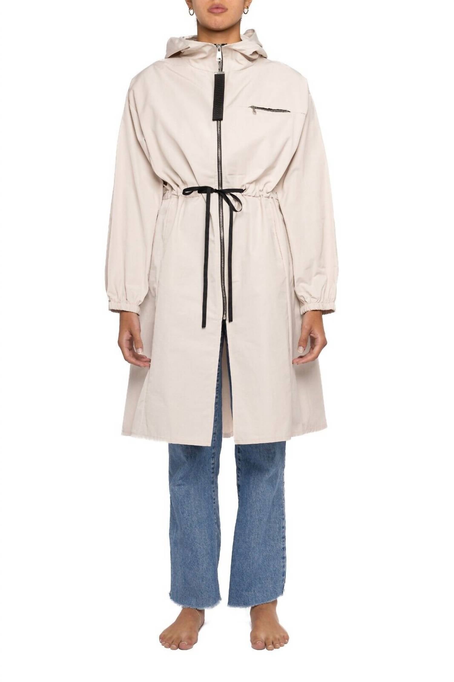 A jacket so versatile you can literally wear it with anything. Stay stylish and dry on your next getaway with the Rainy Day Jacket by ASTRID in an elegant cream shade. Designed with long sleeves and a sleek hooded neckline, this jacket offers both fashion and function. Crafted from a cotton blend( 52% Cotton, 48% Polyester), it features a practical zip closure for easy wear. Origin: Italy.
