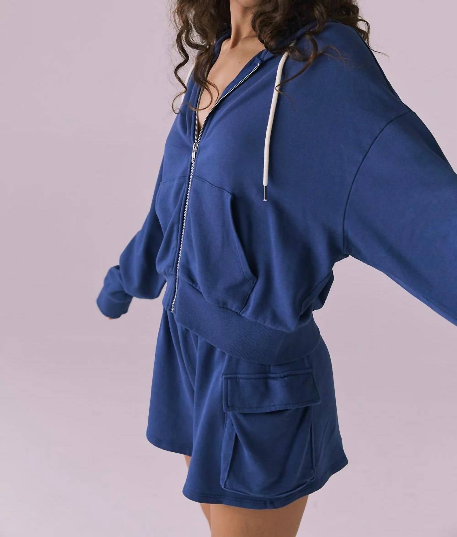 Cute, casual, and comfortable. This jacket is a must have. Introducing the Abilene Honest Zip Up Hoodie by Chaser, a chic addition to your athleisure wardrobe in indigo blue. This long sleeve casual jacket is crafted from 100% cotton, offering supreme comfort with a sporty silhouette. It features a practical zip closure and pockets, ideal for fitness or workout occasions. Easy to maintain with machine wash instructions, this hoodie becomes your go-to for on-the-go looks. Model is 5'9" and wearing size small.