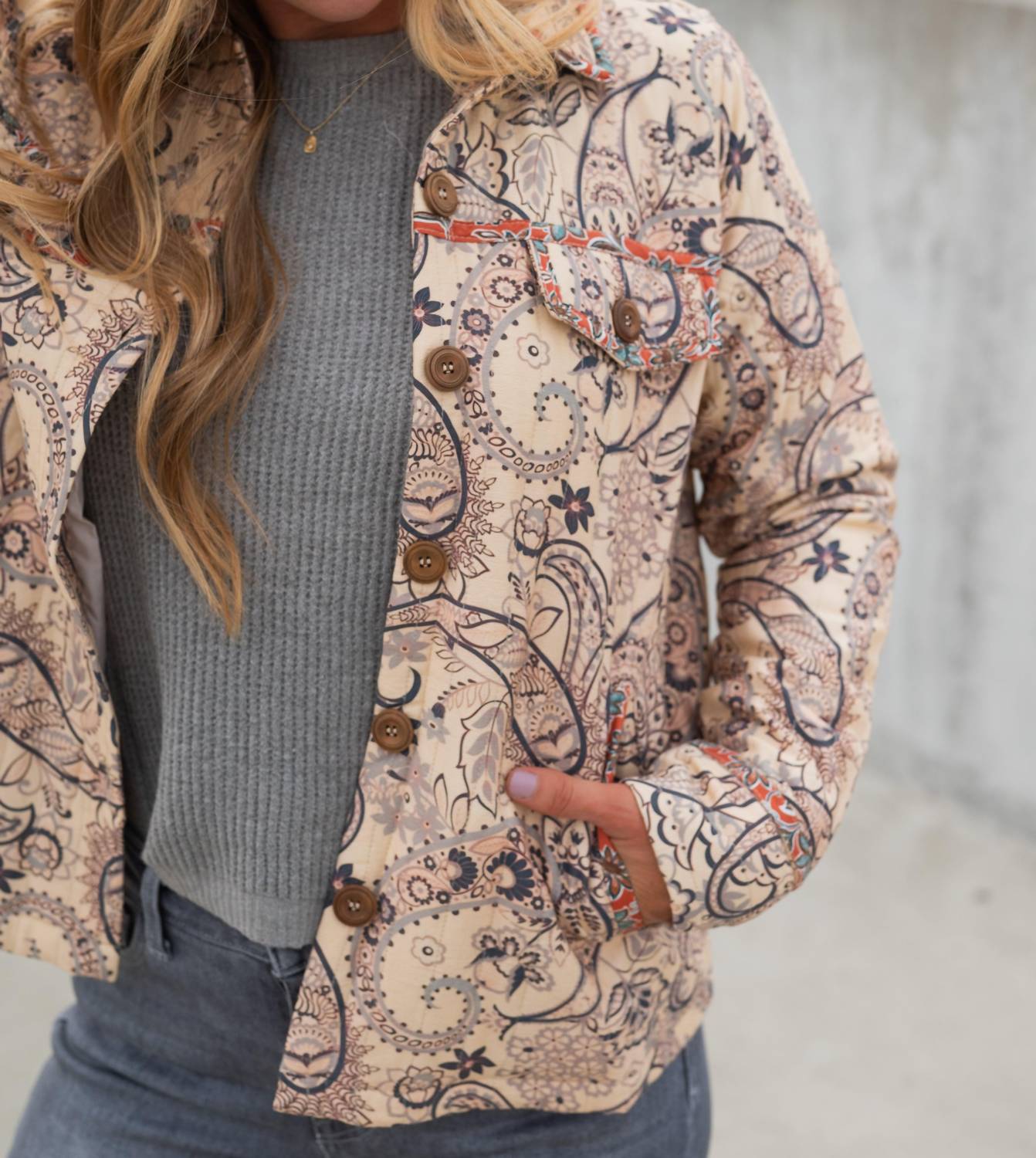 A jacket so versatile you can literally wear it with anything. Elevate your outerwear collection with the Tavian Paisley Jacket by Fate, a refined addition featuring long sleeves and elegant contrast piping. Crafted from a blend of 80% rayon and 20% nylon, with a 100% cotton combination and 100% polyester lining, this jacket boasts a sophisticated paisley pattern that epitomizes Boho Chic style. It comes in a tailored fit with practical front flap pockets and a classic collar, making it a sophisticated choice for a dinner party or any special occasion. Closure: Button closure. Care: Machine wash. Available in a chic Beige Multi color.