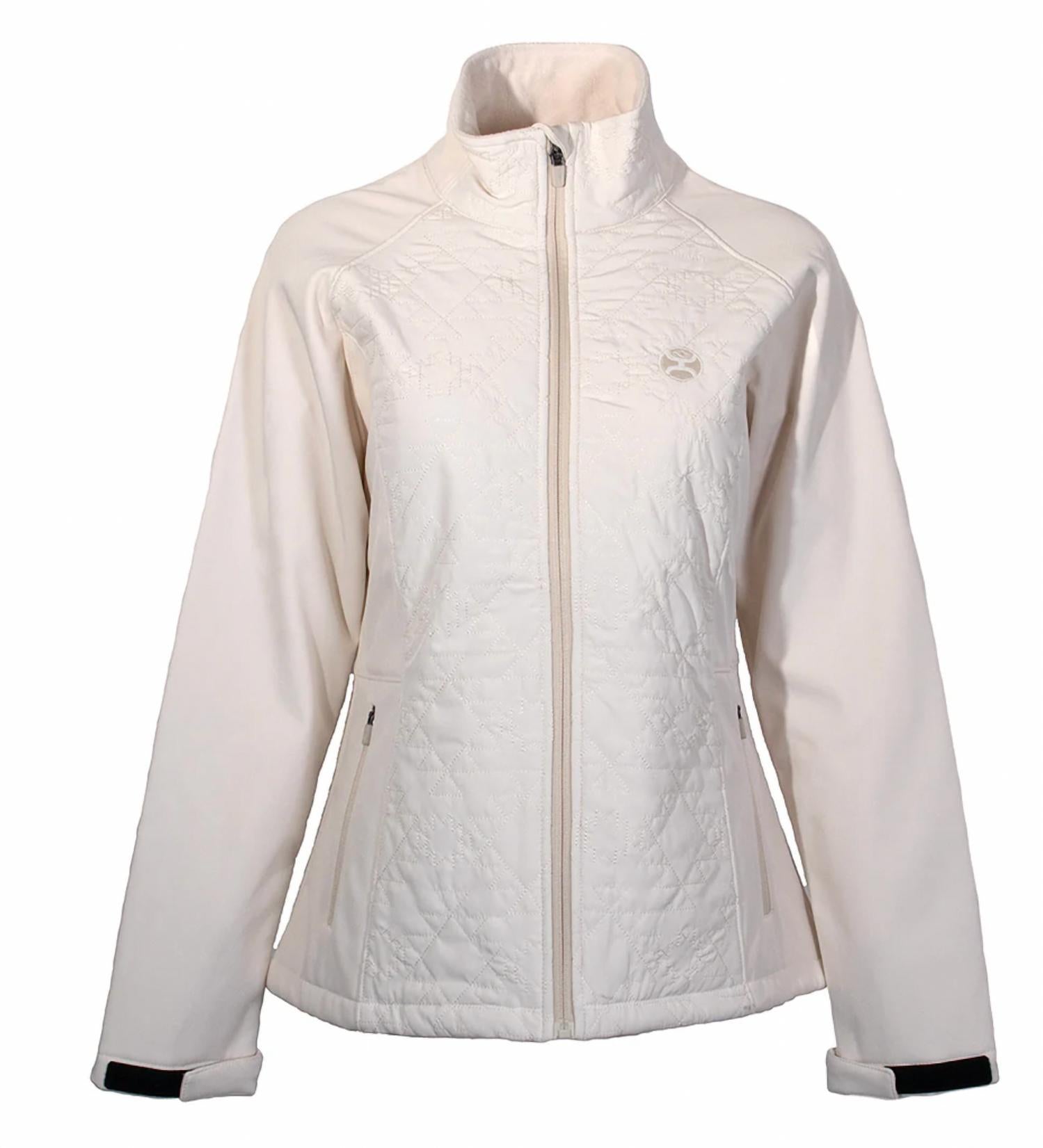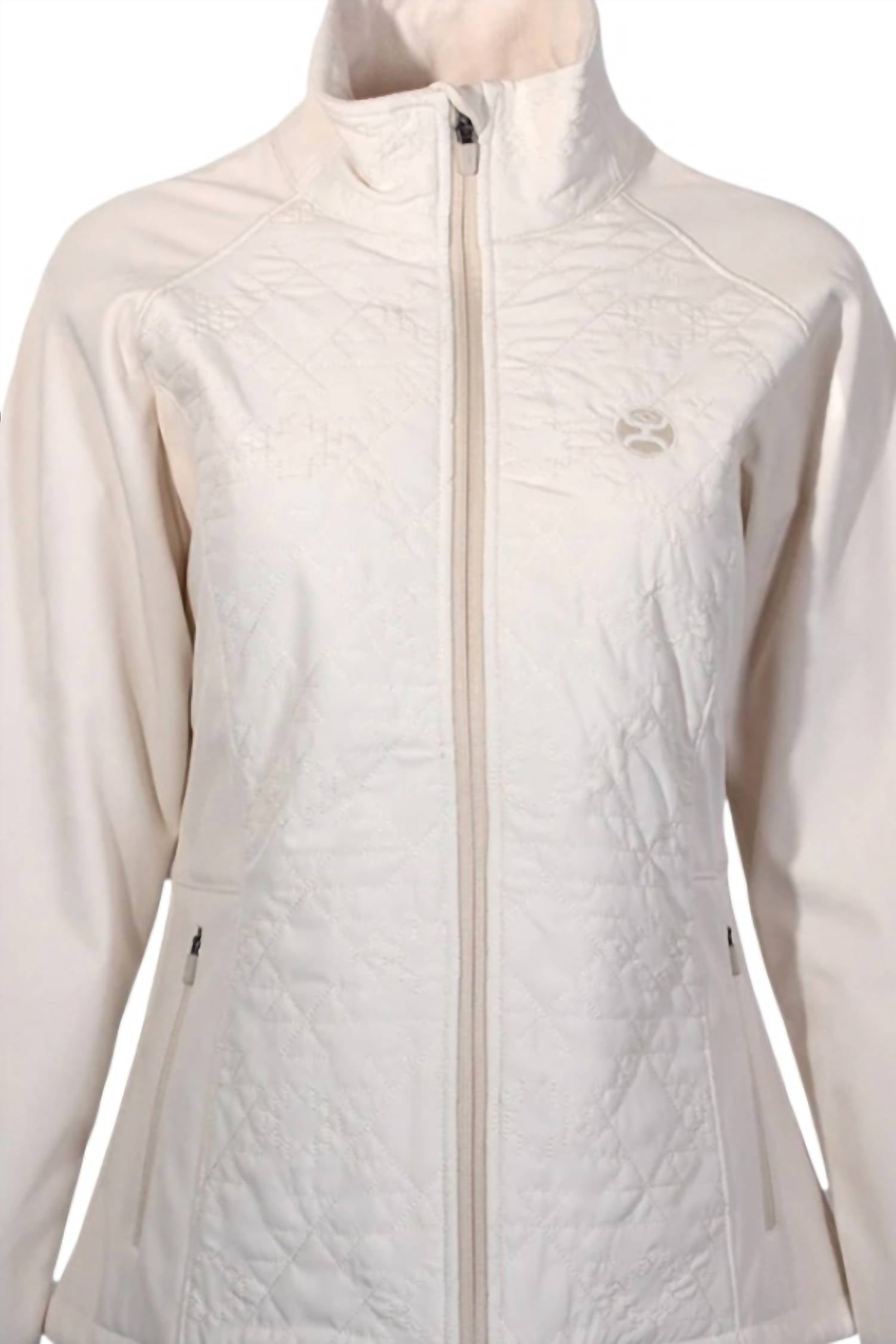 A casual yet cool jacket that every closset needs. The HOOEY Women's Quilted Hybrid Jacket in cream is an essential piece for those who value both style and comfort. This solid-patterned jacket features a long sleeve design and a fashionable mockneck, perfect for a fall dinner party or casual outing. With a convenient zip closure and functional pockets, it effortlessly blends practicality with athleisure trends. Made for women who appreciate versatile outerwear.