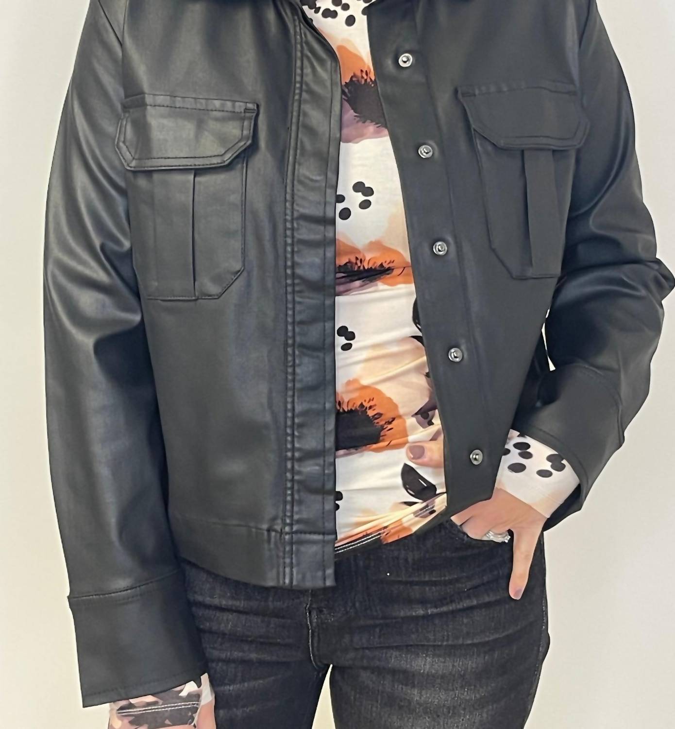 Cute, casual, and comfortable. This jacket is a must have. Introducing the Remy Black Jacket by Kut from the Kloth, an ideal choice for holiday parties and special occasions. Crafted from a sleek, coated 59% Modal, 39% Polyester, and 2% Lycra material, this jacket offers a modern and polished look. Featuring long sleeves, a classic collar neckline, and practical patch pockets, this jacket is both stylish and functional. The front button closure ensures a relaxed fit, perfect for layering over your favorite tops.