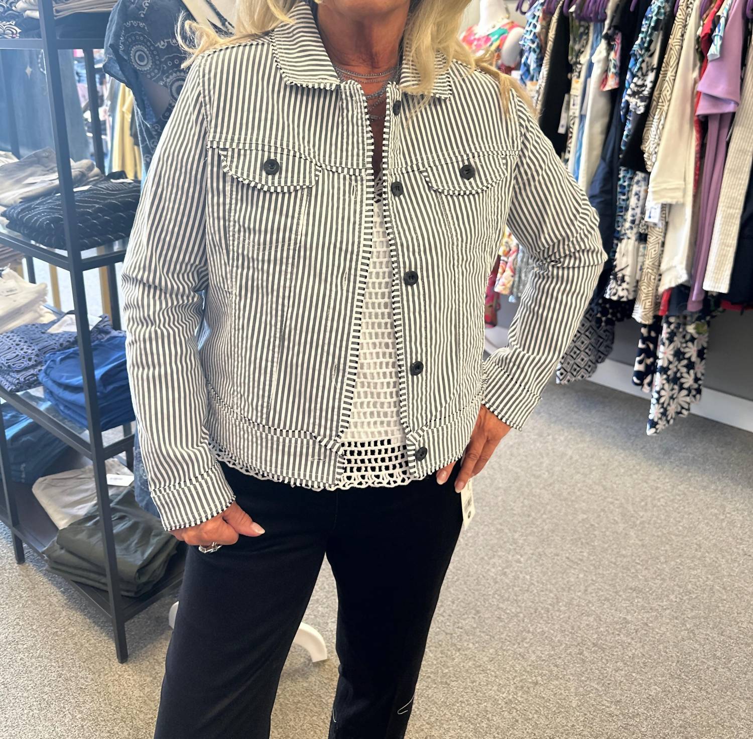 A jacket so versatile you can literally wear it with anything. Embrace the season with the Lulu-B Pin Stripe Jacket, a stylish choice in an alluring blue pin stripe for any holiday occasion. Long sleeves and a classic collar add elegance to this casual jacket, while front pockets offer practicality. Crafted from a durable cotton blend, which includes 70% cotton, 26% nylon, and 4% elastane, this jacket features a convenient button closure. To maintain its quality, hand wash and line dry as needed.