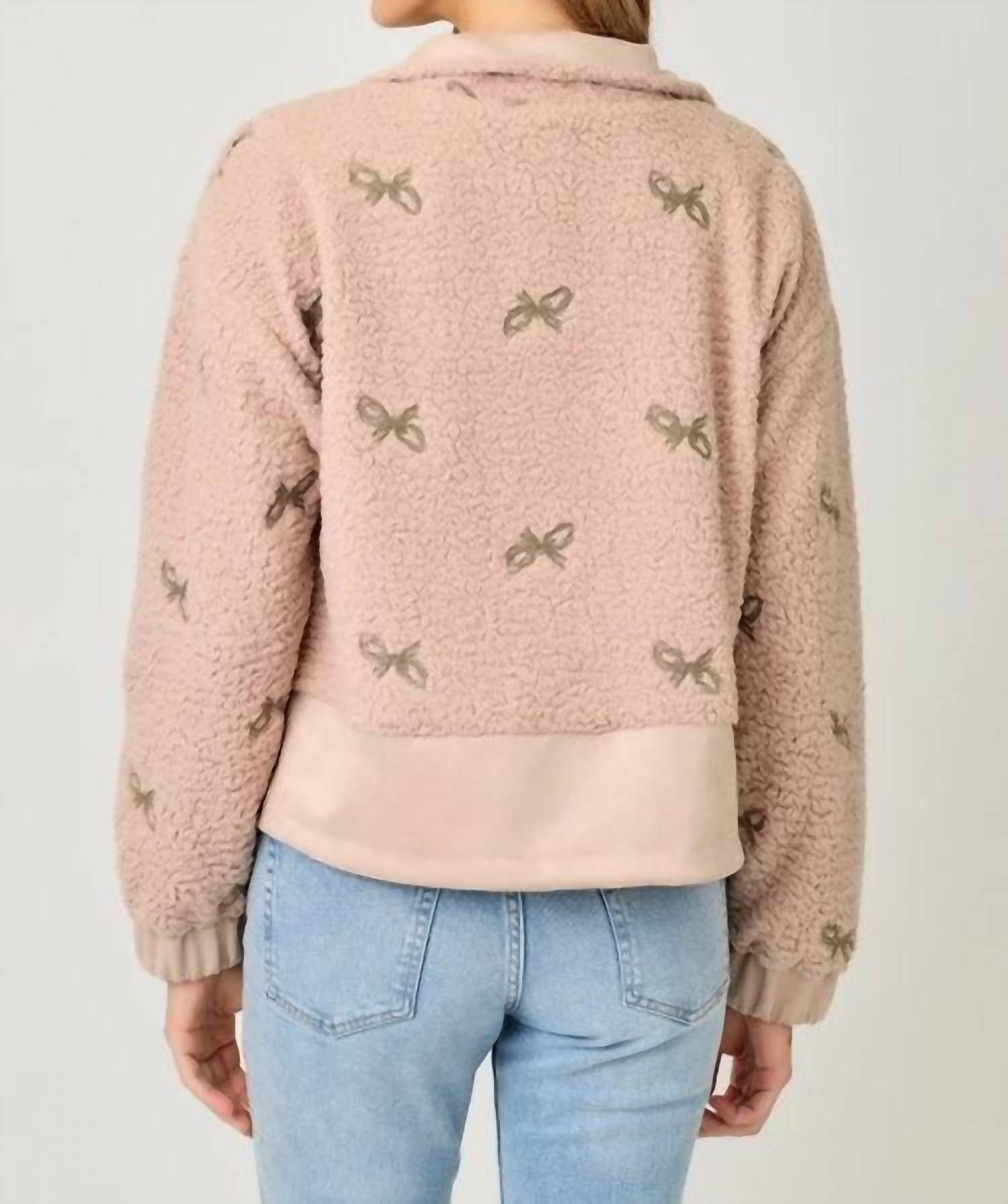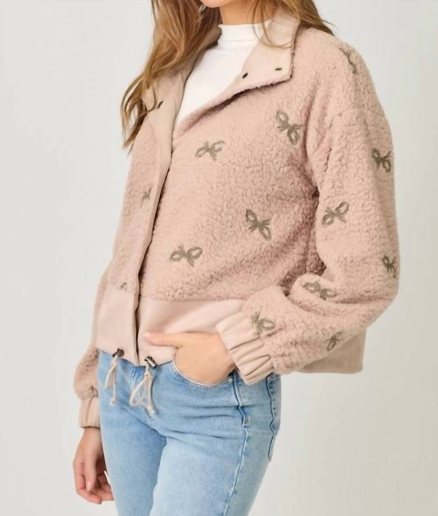 A jacket so versatile you can literally wear it with anything. Introducing the Bow Embroidery Mixed Jacket by Mystree, a chic addition to your fall wardrobe in a delicate rose hue. This women's casual jacket features long sleeves and a crewneck, accented with luxurious suede details. The patterned design includes practical elements such as snap closures and adjustable drawstring bottom, making it both stylish and functional for vacation outings or minimalist looks. Made for casual elegance, it should be dry cleaned for best care.