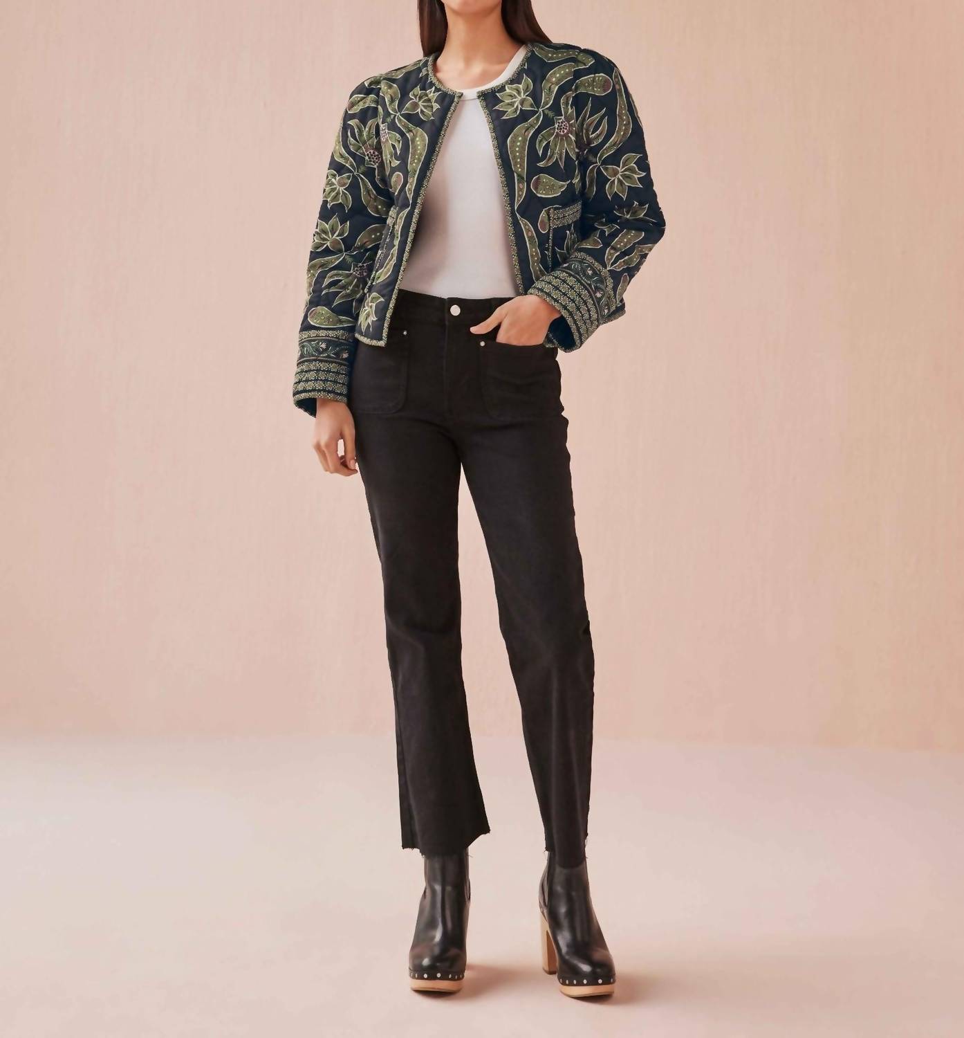 A jacket so versatile you can literally wear it with anything. Introducing the Women's Finley Jacket by OMIKA, a maximalist gem perfect for evening events. This casual jacket comes in the striking Alexia Onyx, featuring a vibrant floral pattern and a crewneck for a modern twist. The long sleeves and pull-on closure ensure comfort and style for spring outings. Designed without lining or pockets, it caters to big & tall sizes, offering an effortless fit for special occasions.