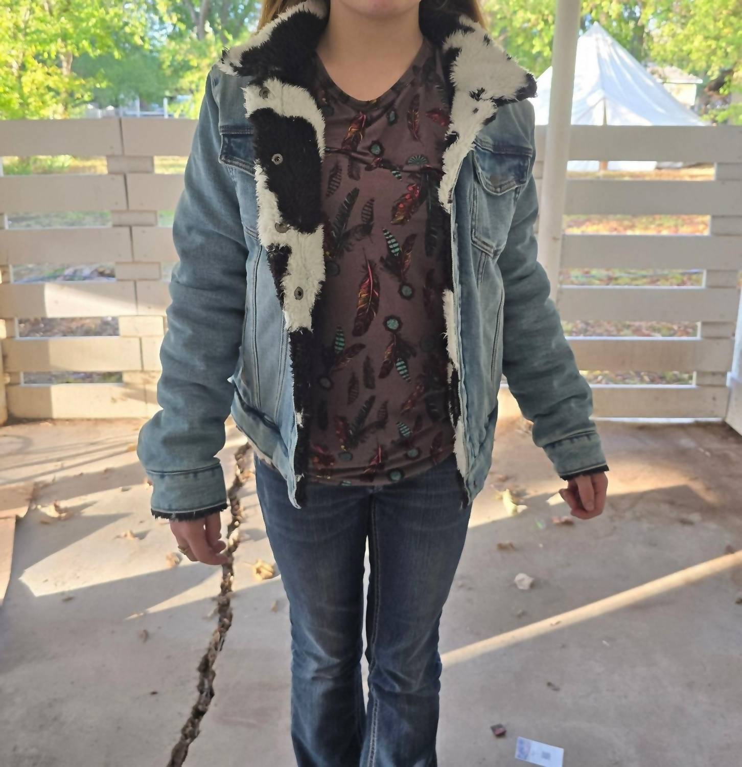 A jacket so versatile you can literally wear it with anything. Introducing the Denim Reversible Shurpa Jacket by Rock & Roll Denim, a stylish and practical addition to your fall wardrobe. This women's casual jacket features long sleeves and a solid blue color, perfect for a streetwear look on vacation. It is thoughtfully designed with a collar neckline, snap closure, and functional pockets. Enjoy its versatile denim design, crafted to complement any outfit, with care instructions readily available upon purchase.