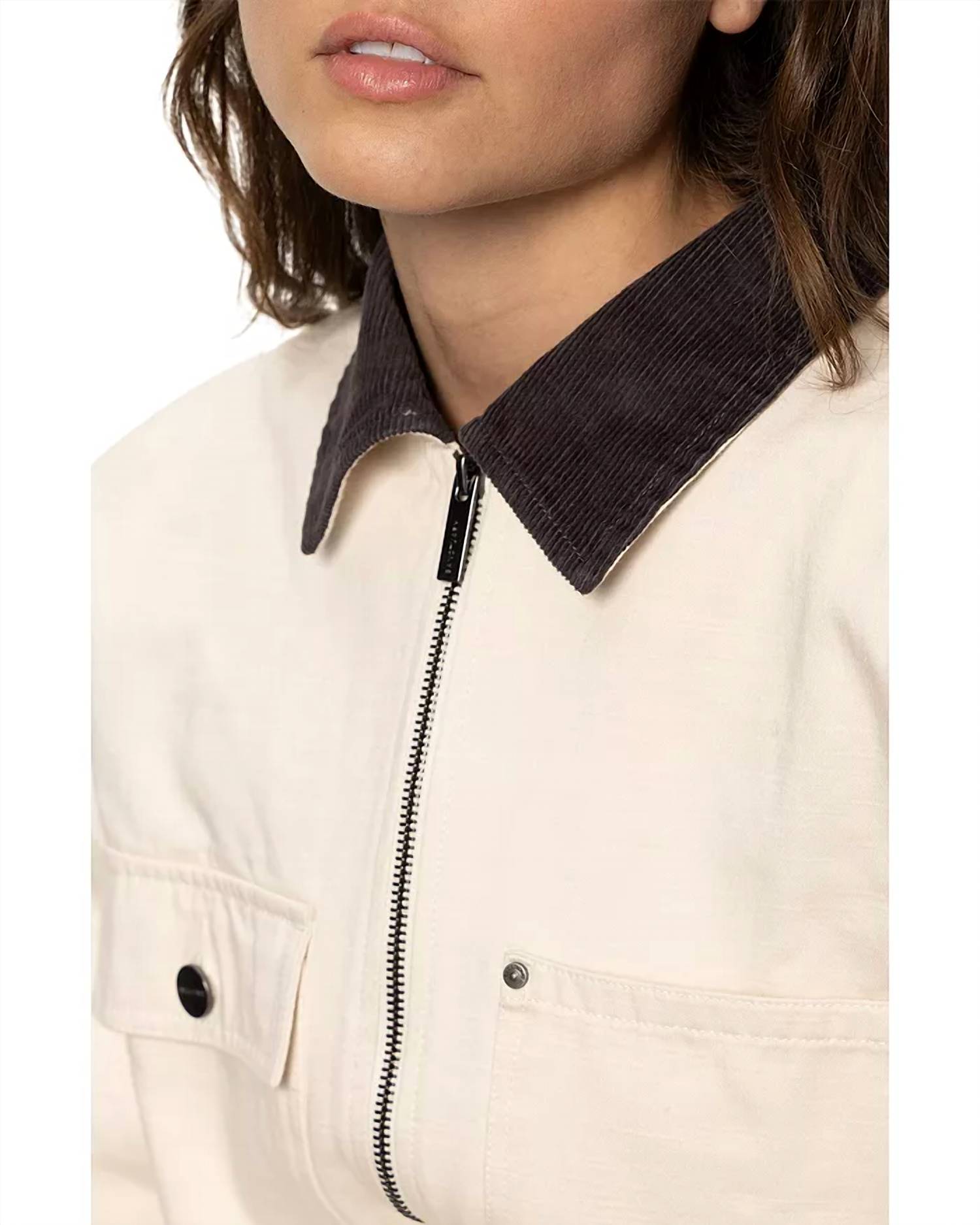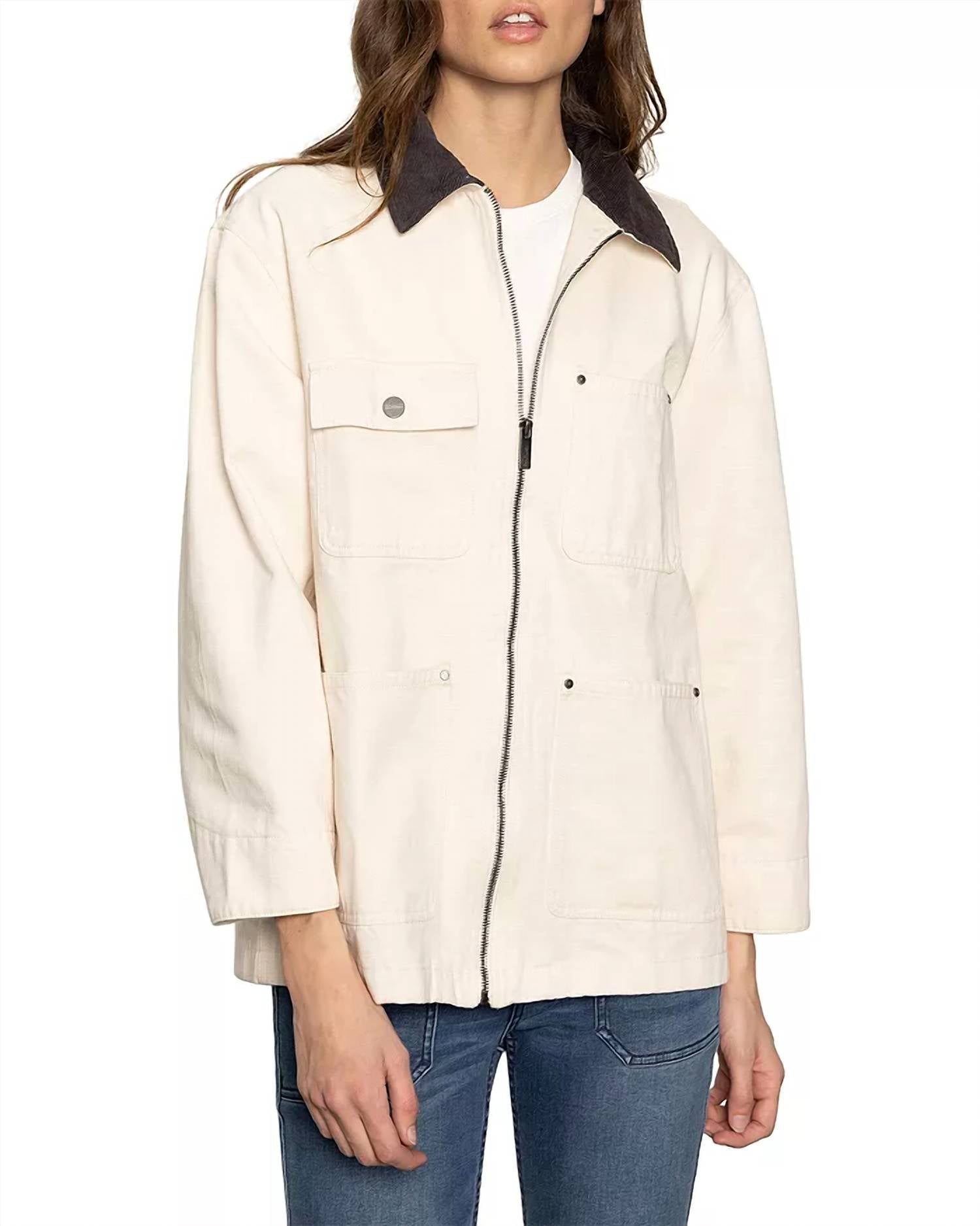 A casual yet cool jacket that every closset needs. Meet the Zip Up Barn Jacket by Sanctuary, a minimalist staple in Light Oat perfect for your travel wardrobe. This casual jacket features long sleeves, a practical front zip closure, and useful chest flap and side patch pockets. Crafted from 100% cotton, this piece offers an ideal blend of style and comfort. Care for it easily with machine wash instructions.