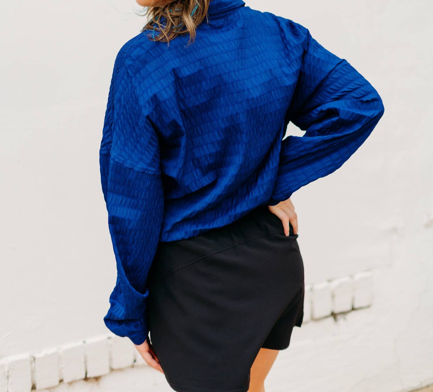 A casual yet cool jacket that every closset needs. Elevate your active wardrobe with the Spanx Active Run Jacket in a striking Midnight Iris hue, crafted for both performance and style. This long-sleeve, textured jacket features a half zip closure along with discreet zipper pockets and a kangaroo pocket, perfect for securing essentials on the go. Made from a breathable 97% Nylon and 3% Elastane blend, it boasts sweat-wicking, quick-drying properties equipped with water-repellent technology. Ideal for travel, it fits seamlessly into your versatile fall fashion lineup.