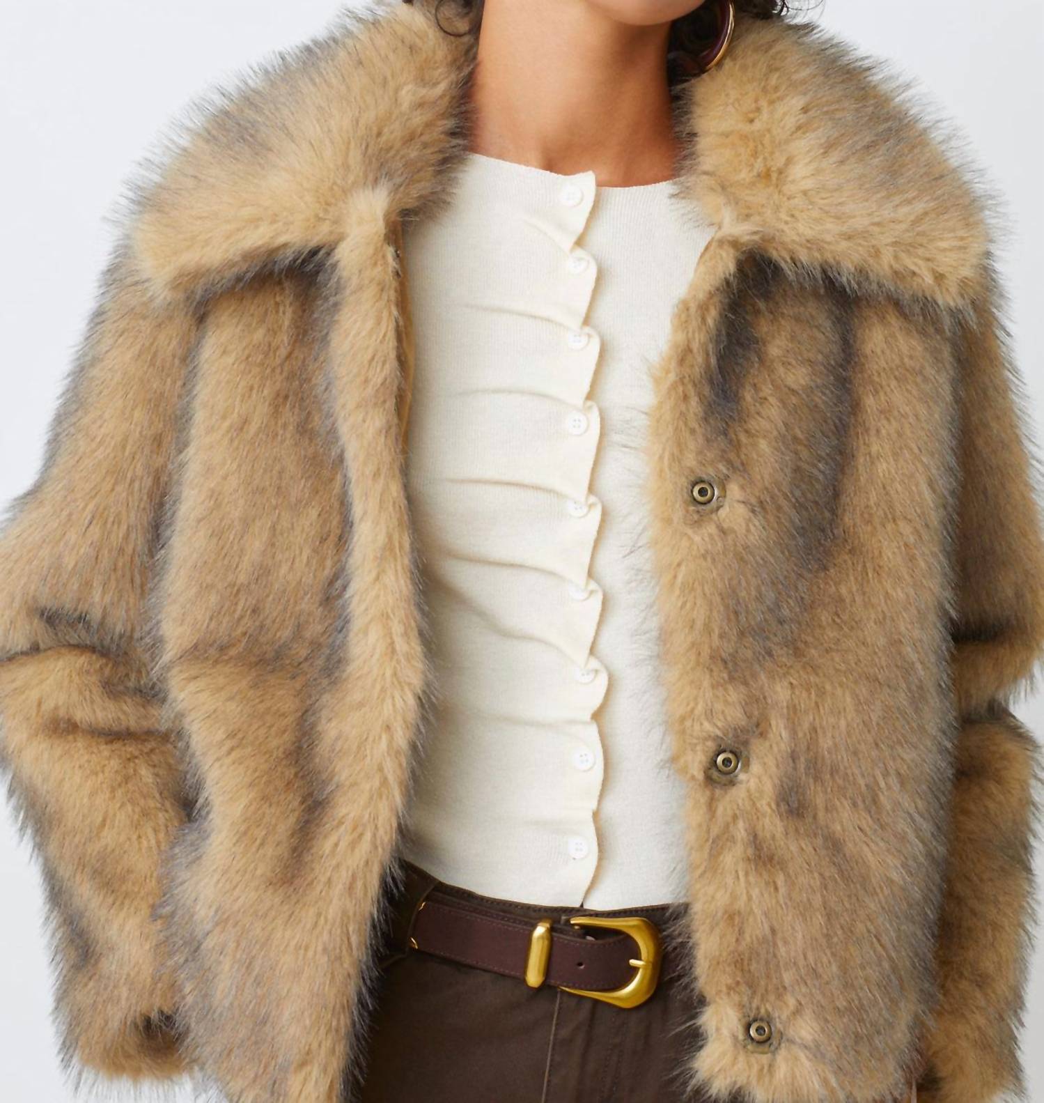 A casual yet cool jacket that every closset needs. Elevate your winter wardrobe with the Suncoo Short Marble Coat in a chic beige hue. This women's casual jacket boasts long sleeves and is crafted from 100% recycled polyester, ensuring sustainable style with a fashionable furry texture. The minimalist design includes a collar neckline and snap closure for a sleek finish. Ideal for vacation wear or Thanksgiving gatherings, this coat should be dry cleaned to maintain its unique flair.