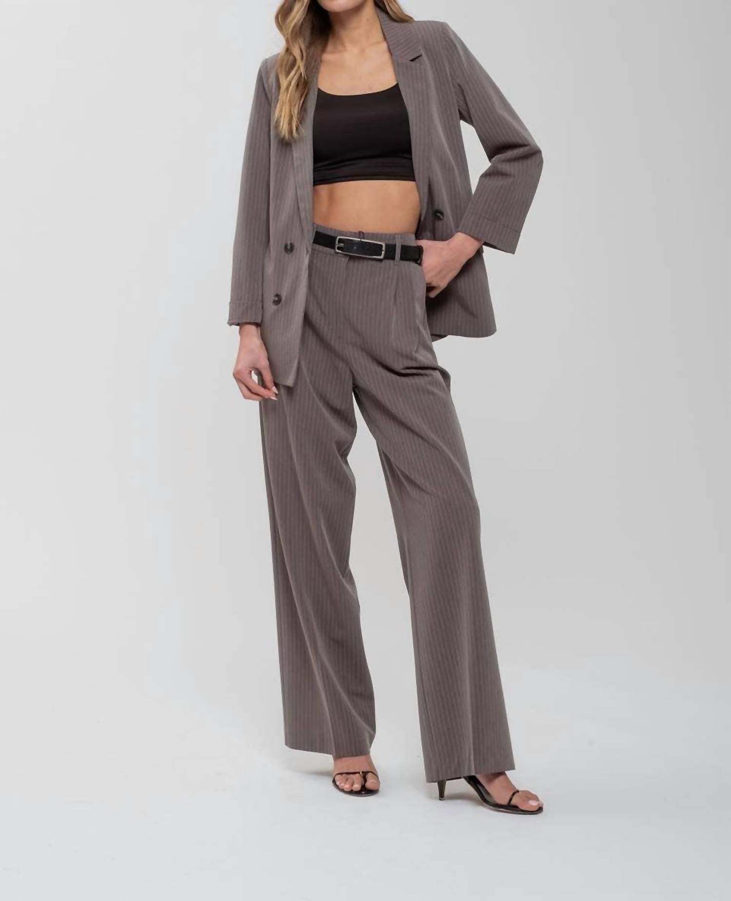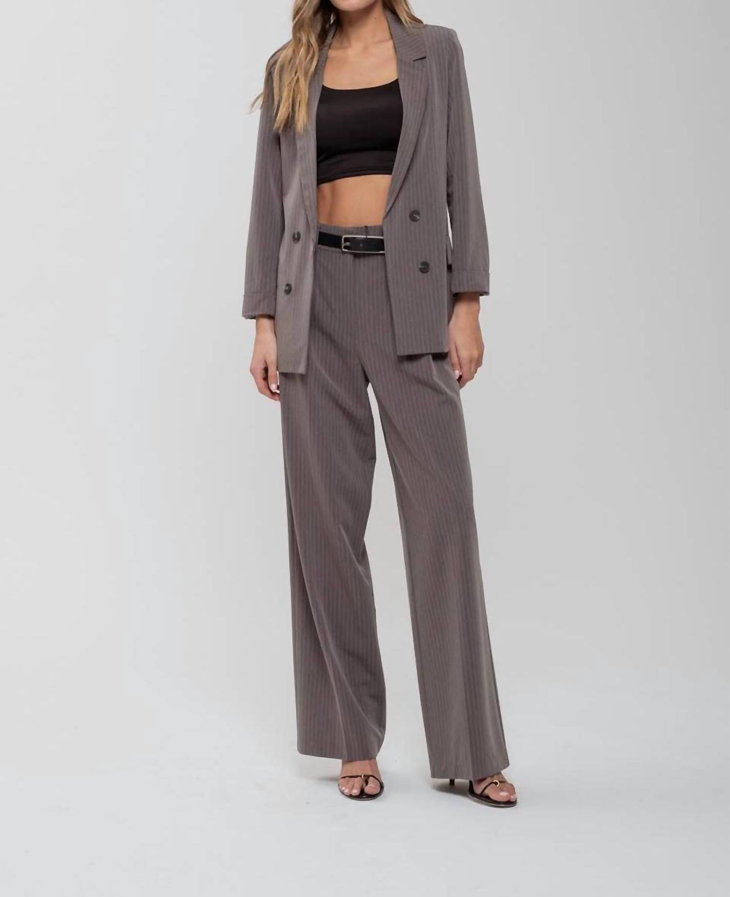 Cute, casual, and comfortable. This jacket is a must have. Elevate your style with The Workshop Studio's Pinstripe Notched Collar Jacket, perfect for a sophisticated touch at any holiday party. Featuring long sleeves and a chic pinstripe pattern, this jacket offers a flattering notched collar and button closure for a polished look. Crafted from a blend of 79% polyester, 17% rayon, and 4% spandex with a 100% polyester lining, it promises a comfortable fit in a sleek gray hue. Plus, it includes convenient pockets for added functionality.