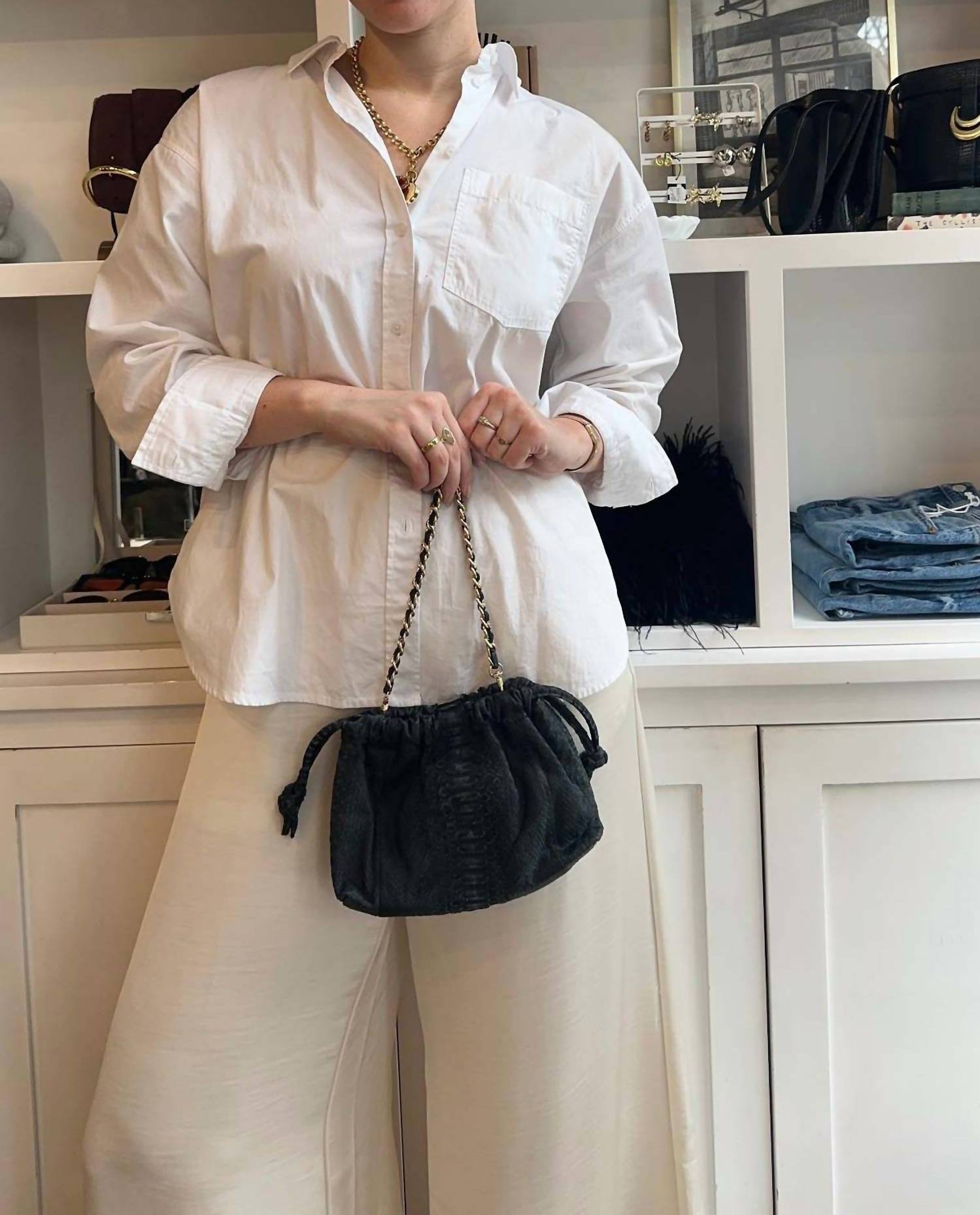 Lipstick, check. Mints, check. Credit card, check. The cutest little bag that holds all of your necessities. Vitta is a high quality washed color python handbag. Comes with two detachable straps to take this bag from day to night. It has a very strong magnet closure. Dimensions: 9x6x3