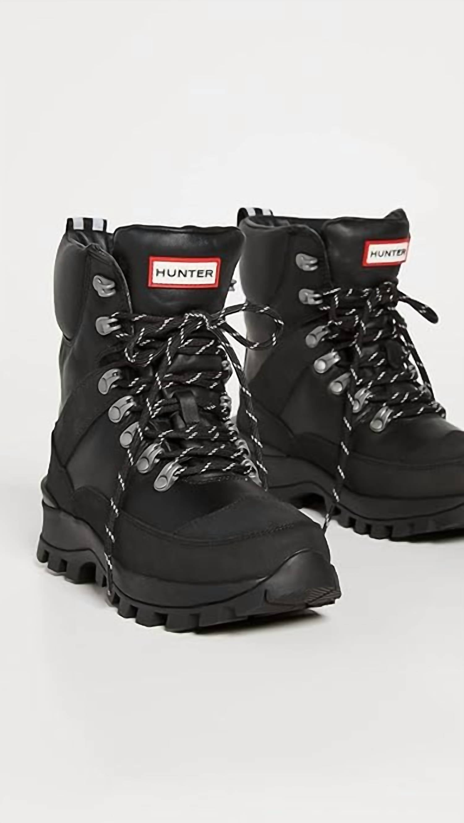 Presenting the Women's Commando Boots by HUNTER, expertly crafted from durable rubber in a sleek black shade. These combat and moto boots are designed for adults, featuring a stylish round toe and a chunky heel for added stability. Originating from a trusted brand, they offer a low heel height ranging from 1 1/4" to 2". Perfect for empowering women who appreciate both fashion and functionality.