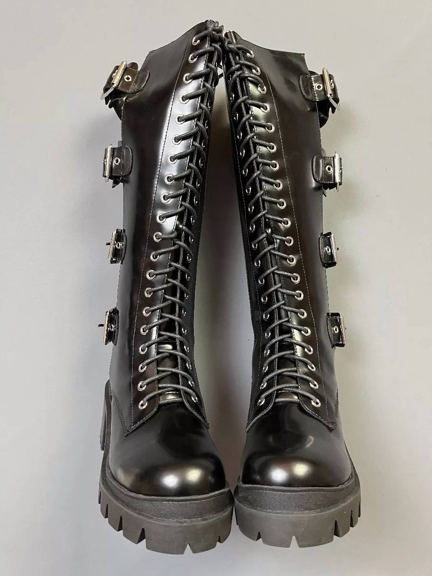 Jeffrey Campbell - Women's Tank Girl Back Buckle Cut Out Lace Up Chunky Heeled Boot Combat