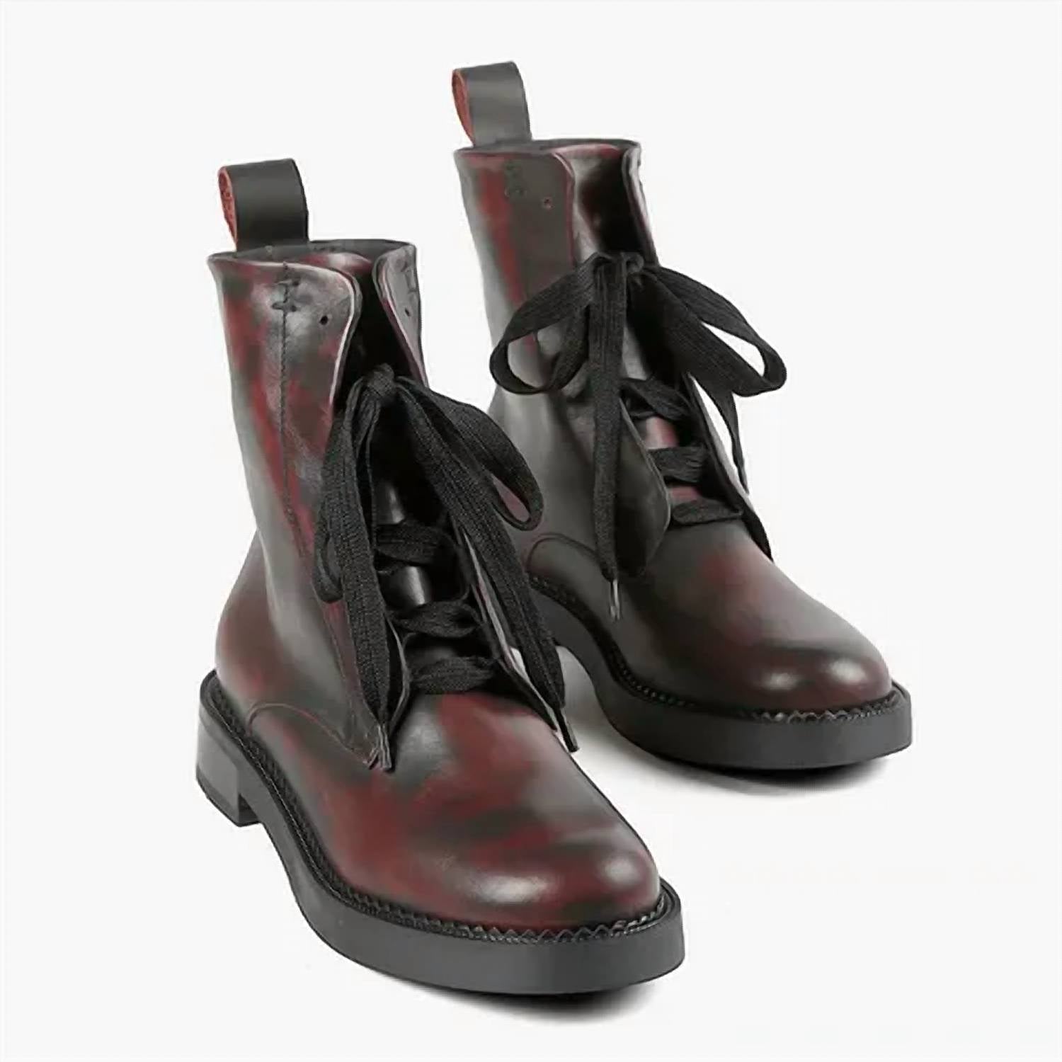 The moto boot trend is here to stay and we especially love this style. Lace up feminine combat boot with a hint of red. Perfect for fall!